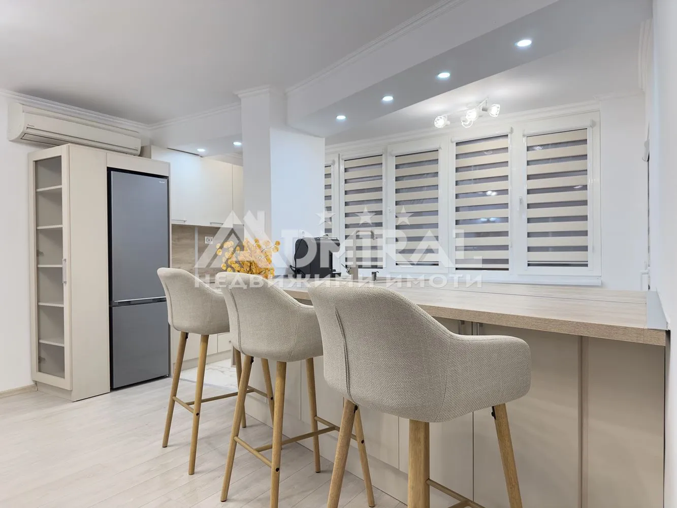 САМО ОТ ADMIRAL НЕДВИЖИМИ ИМОТИПредлагаме под наем просторен тристаен апартамент в сърцето на град Бургас – ул. „Гладстон“, в близост до всички удобства на централната част на града.Апартаментът е разположен на втори етаж и е след основен ремонт – всичко е ново, а Вие ще бъдете първите наематели!Жилището се състои от:Просторна всекидневна с модерна кухня, напълно оборудвана с фурна, котлони, абсорбатор, хладилник, съдомиялна, пералня, кафемашина и телевизорДве уютни спални, всяка с телевизор и климатикБаня с тоалетна Голяма тераса, подходяща за отдих и чаша кафеДопълнителни предимства:Гараж с ролетна щора + паркомясто с антипаркинг скоба – изключително удобство в централната градска частМазе 15кв.м.Климатици във всяка стаяНова дограма REHAU – гарантира отлична шумоизолация и запазва топлината в жилищетоСветъл, топъл и енергийно ефективен имот, готов за нанасяне.✨ Имотът е идеален за хора, които ценят комфорта, качеството и модерния стил на живот в центъра на Бургас!Съобразно новото обзавеждане не се допускат домашни любимци.За повече информация и организиране на огледи, моля свържете с нас на посочения телефон!