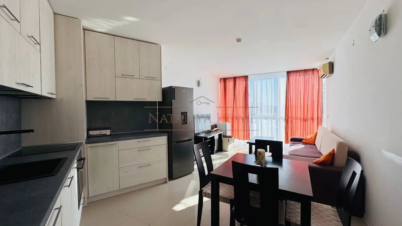 Наталия Хоум има удоволствието да Ви предложи уютен двустаен апартамент под наем в жилищен комплекс в крайбрежния квартал на гр. Бургас - Сарафово.Сградата е разположена на метри от морския бряг в новата част на квартала.Апартаментът е с площ от 62 кв.м., на четвърти етаж и се състои от антре, светла всекидневна с кухненска част, комфортна спалня, баня/WC и тераса с излаз от двете стаи с изглед към морето.Жилището е напълно обзаведено и оборудвано с нови мебели и електроуреди.Имотът е светъл със западно изложение и функционално разпределение без преходни стаи.На територията на комплекса са разположени места за отдих, детски кът, открит басейн, СПА център и фитнес център.Отдава се до м.март 2026г.