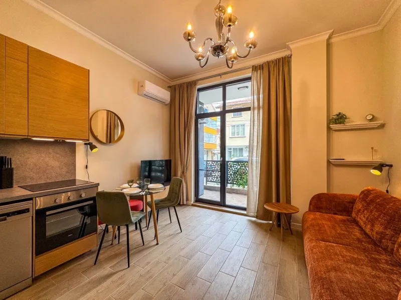 214924 Под наем за дългосрочно наемане се предлага уютен и комфортен апартамент с две спални на първия етаж на съвременна сграда в Сарафово. Апартаментът се намира на отлично място - само на 300 метра от морето, в близост до градската и курортната инфраструктура на района.Апартаментът е с оригинален авторски дизайн от АН Lev Estates.Апартаментът с обща площ 79 кв.м е напълно обзаведен с качествени мебели и оборудван с модерна техника. Има всичко необходимо за целогодишно живеене.Апартаментът разполага с отделно антре с коридор, зонирана всекидневна с кухненски бокс, уютна спалня, баня с душ кабина, балкон с зона за отдих с изглед към града.750 на месец + комунални разходи.