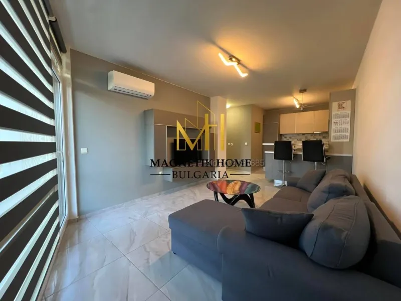 Драги наематели, Ние от агенция за недвижими имоти Magnetik Home имаме огромното удоволствие да ви зарадваме с тази неустоима оферта, а именно модерен двустаен апартамент с паркомясто до х-л Мираж в ж.к. Славейков.Разпределението на имота се разгръща както следва: голямо входно антре, баня със стъклена преграда + тоалетна, просторен хол + голям П образен кухненски бокс, спално помещение и голяма открита тераса.Изложението на имота е изцяло ЮГО - ИЗТОЧНО, което го прави изключително топло допринасящо за по - ниските консумативни разходи през зимните месеци.Апартаметът е оборудван изцяло до най - малкият детайл като в допълнение се предлагат 2 чисто нови инвенторени климатика Daikin, голям плазмен телевизор, високо - качествени вградени електроуреди, съдомиялна, микровълнова, прахосмукачка, ютия, цялостна кухненска посуда, спално бельо и т.н.Голямо предимство на жилището е именно неоговата локация поради факта, че се намира в по - спокойната част на квартала в непосредствена близост прекрасния парк пълен със множество зони за отдих, детски площадки, заведения и т.н.Също така, в новопостроената сграда има фитнес център, супер маркет и пицария, които са част от удобствата наоколо!Друго предимство на жилището е че към наемната цена е включено и ПАРКОМЯСТО в подземния паркинг на сградата!Ще се радваме да удовлетворим вашите най - дълбоки желания и нужди, затова не се притеснявайте да ни потърсите за всеки един допълнителен въпрос касаещ имота или други наши предложения!