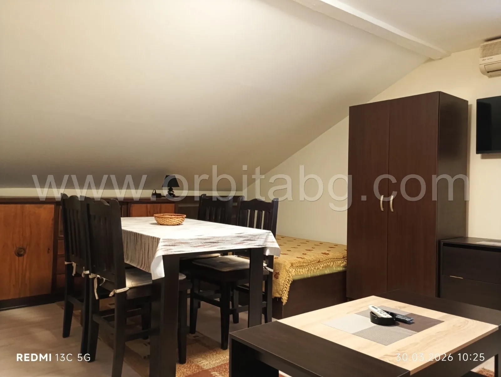 Агенция Орбита предлага под наем таванско помещениена 4-ти етаж в еднофамилна къща, находяща се на ул. Козлодуй в карето между бул. Христо Ботев, бул. Сливница и ул. Опълченска. Еднопространствено помещение - ситуиран кухненски бокс с всичко необходимо; маса и столове за хранене; мека мебел; TV; кът за спане - легло персон и половина; двукрилен гардероб;ебел; спалня; отделно кухня - оборудването е ново; баня и тоалетна. Къщата е санирана и разхода за отопление е минимален. Отоплението е на климатици. Отлична локация, тихо, спокойно място за живеене, с бърз достъп до идеален център. В близост има много автобусни спирки, тролей, трамвай. Огледи по всяко време! Агенцията разполага с ключ! За оглед и повече информация Лидия Пенчева 0888316272 /оферта 49/
