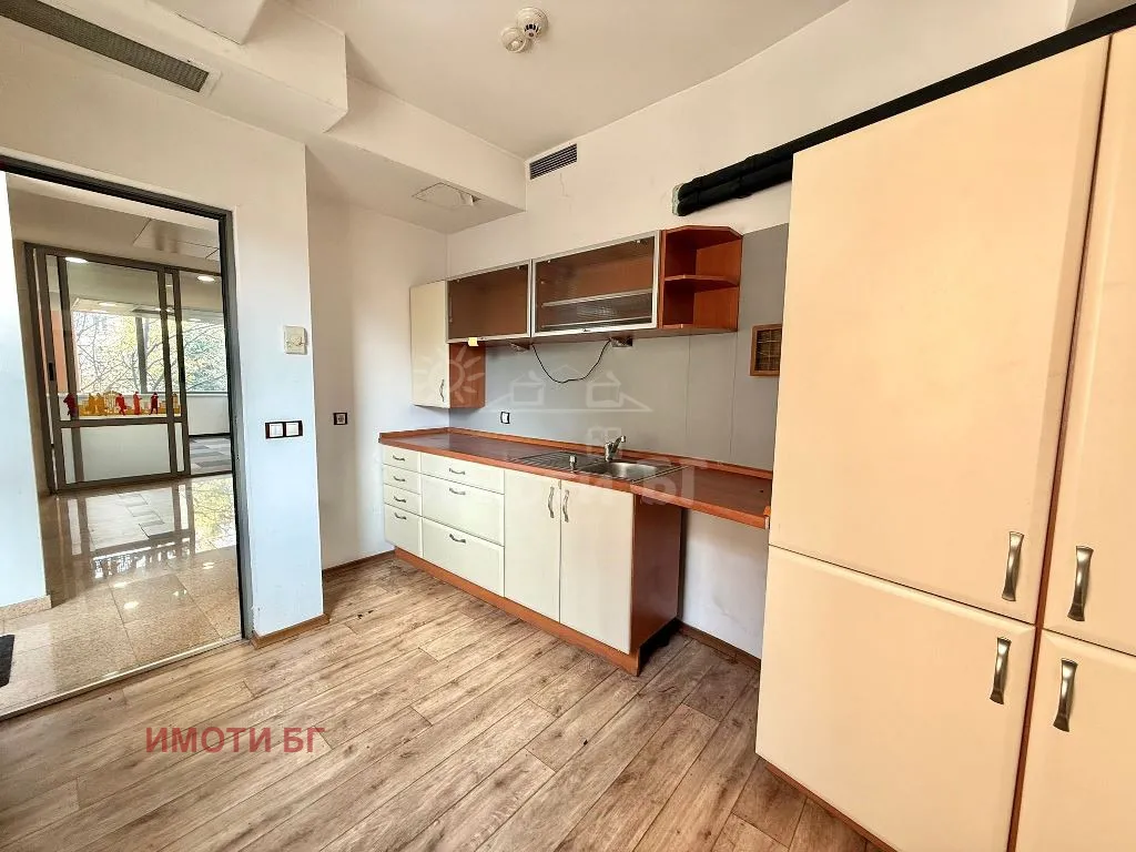 ИмотиБГ предлага под наем офис в представителна бизнес сграда с луксозни общи части и контрол на достъпа. Сградата е ситуирана на бул. Акад. Иван Евстатиев Гешов в близост до бул. България и множество спирки на градски транспорт, включително метро. Офисът заема цял етаж от сградата и е разпределен по следния начин: рецепция, удобно обособени отделни кабинети (9 на брой), кухня, самостоятелен двоен санитарен възел и собствена тераса. Настилки от гранитогрес и висок клас мокет, преградни стени от стъкло, възможност за ползване на частично обзавеждане. Отопление/охлаждане посредством термопомпа и система с индивидуални програматори. Обявената цена е без включен ДДС.