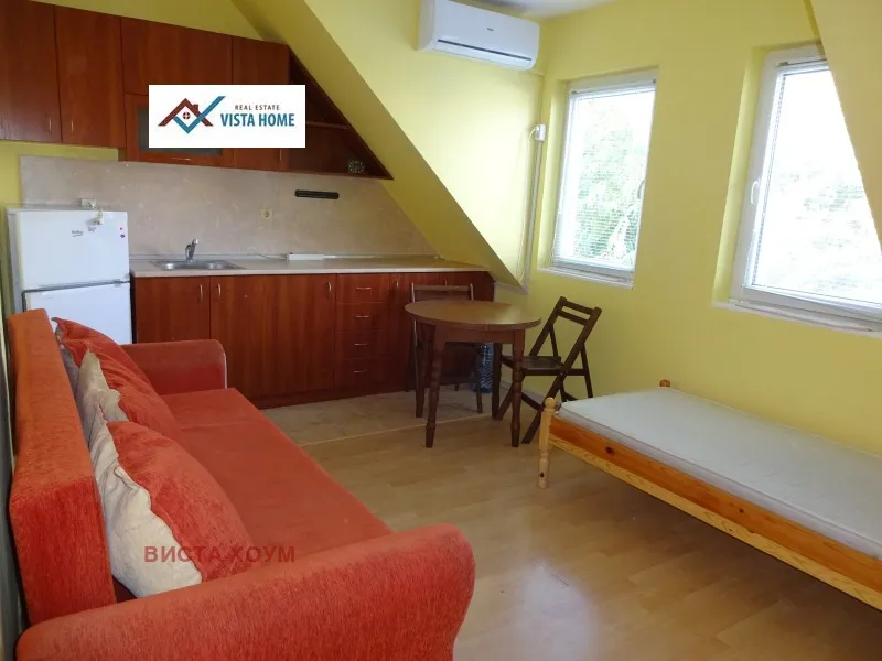 Предлагаме уютна и функционална боксониера в района на Макдрайв и Зимно кино Тракия. Жилището се намира в нова тухлена кооперация, на трети етаж. Състои се от слънчева стая, остъклена тераса с абсорбатор и готварска печка, коридор, баня и тоалет. В дневната има функционални кухненски шкафове с плот, голям хладилник, гардероб, удобен разтегателен диван, легло. Банята е с душ-кабина. Локацията е отлична в пешеходна близост до идеалния център, до спирки на градския транспорт, училища, детски градини.