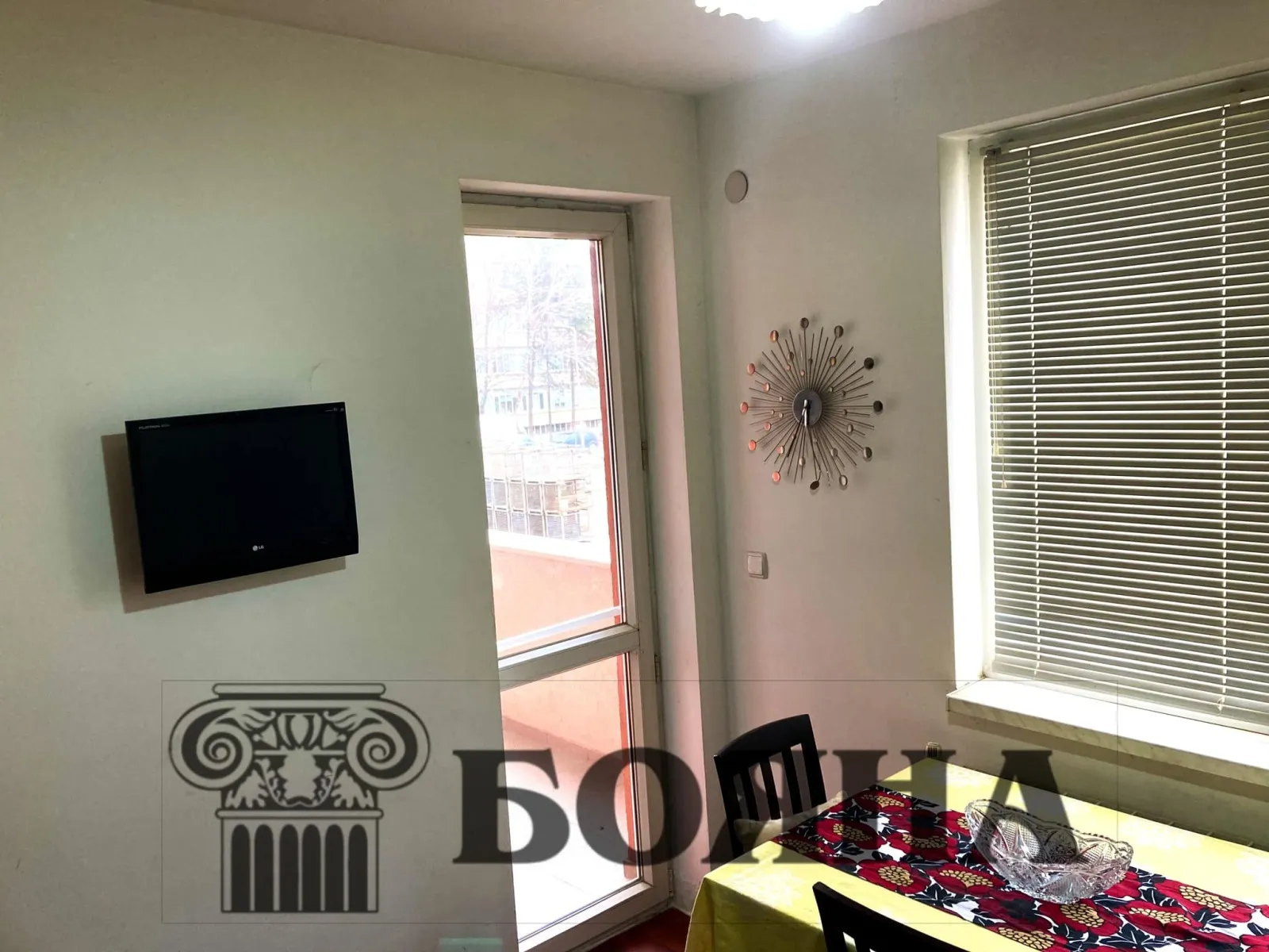 Имоти 'Бояна' отдава светъл 1-стаен монолитен апартамент, разположен в ж. к. Здравец Север, на пешеходно разстояние от УМБАЛ Медика и Мол Русе. Имотът е в нова кооперация с много добре поддържани общи части. Състои се от всекидневна със спалня, напълно оборудвана кухня, баня с душ кабина, тоалетна и тераса. Жилището е с вътрешна и външна изолация и сменени всички дограми. Имотът се отоплява с централно парно /ТЕЦ/, с нова система, която гарантира малки сметки за отопление. Апартаментът се отдава с всички неоходими електроуреди - хладилник с диспенсър за вода и лед, нова фурна, котлони, нов бойлер, телевизор в кухнята и всекидневната, пералня и сушилня, поставен е и климатик във всекидневната.