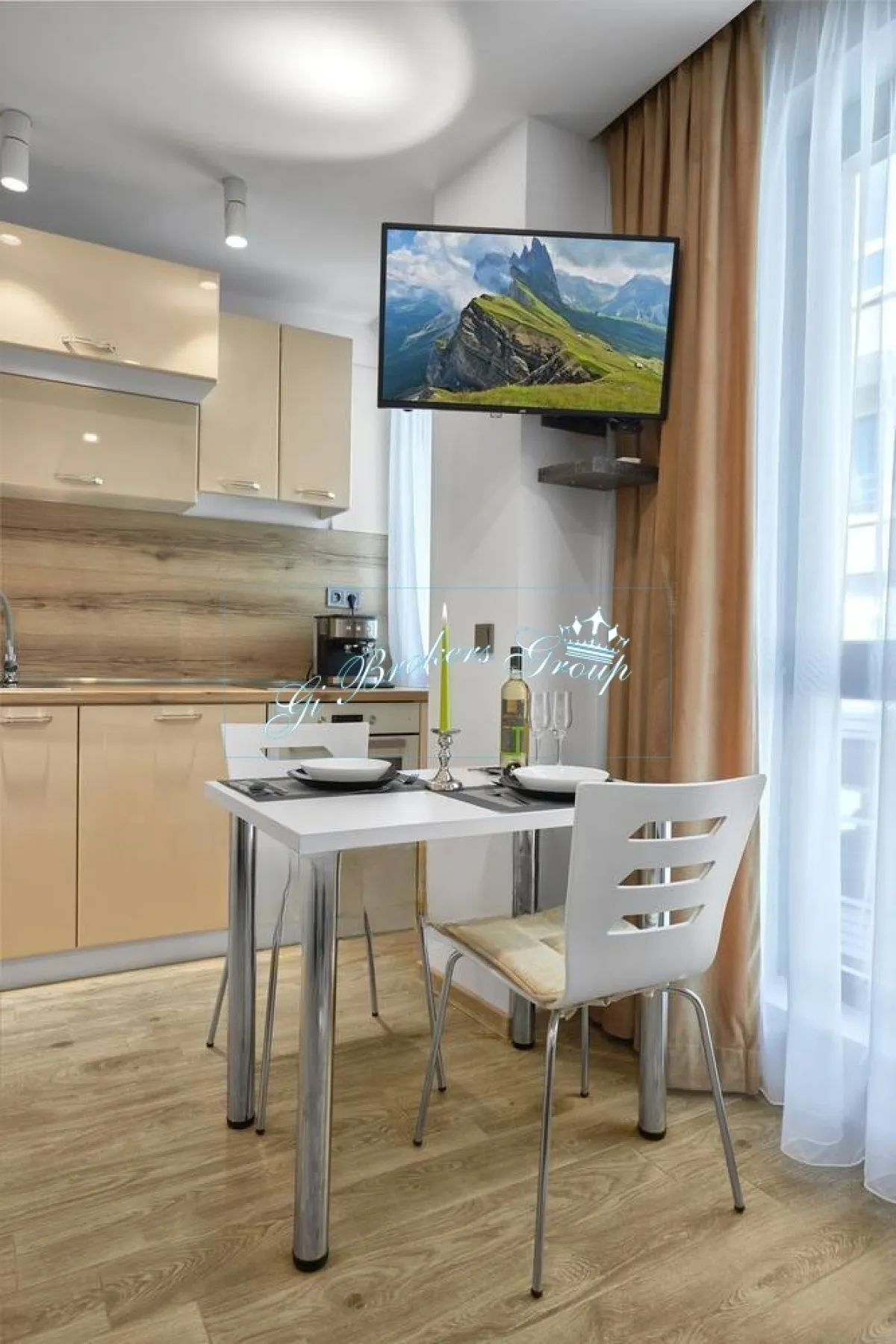 Намира в стилна нова сграда на втори жилищен етаж, с площ от 40 кв.м. Състои се от коридор, всекидневна, баня с тоалетна и тераса. Във всекидневната са обособени зона за готвене и хранене с модерна кухня, зона за отдих и зона за сън.