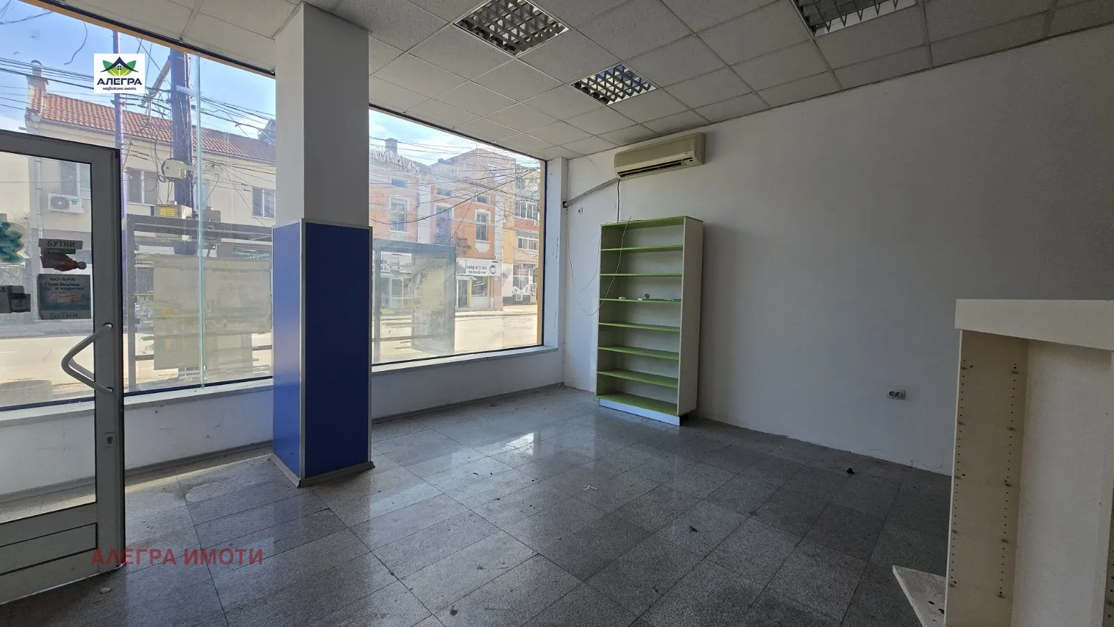 Имотът разполага с голяма витрина към булеварда 🪟, която осигурява отлична видимост и възможност за реклама 📢. Помещението е оборудвано с климатик ❄️, осигуряващ комфорт през всички сезони.