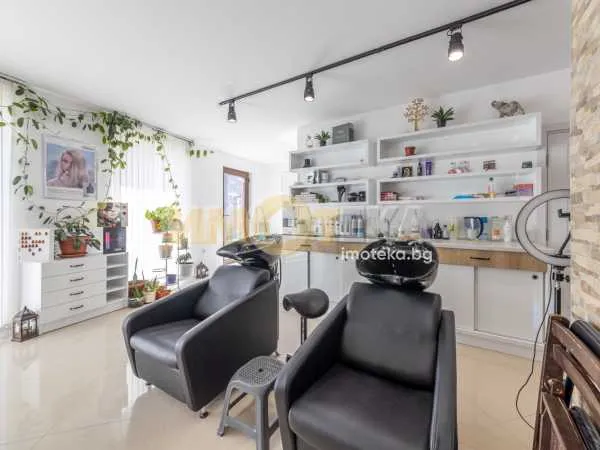 ИМОТЕКА отдава под наем луксозно обзаведен салон с площ по нотариален акт 71.27 кв.м. Има обособени зони за козметика и масаж, педикюр и маникюр и два работни стола за фризьори . Предлага и паркомясто за клиенти.