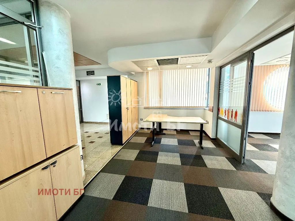 ИмотиБГ предлага под наем офис в представителна бизнес сграда с луксозни общи части и контрол на достъпа. Сградата е ситуирана на бул. Акад. Иван Евстатиев Гешов в близост до бул. България и множество спирки на градски транспорт, включително метро. Офисът заема цял етаж от сградата и е разпределен по следния начин: рецепция, удобно обособени отделни кабинети (9 на брой), кухня, самостоятелен двоен санитарен възел и собствена тераса. Настилки от гранитогрес и висок клас мокет, преградни стени от стъкло, възможност за ползване на частично обзавеждане. Отопление/охлаждане посредством термопомпа и система с индивидуални програматори. Обявената цена е без включен ДДС.ID в агенцията .617219. За контакти и повече информация www.imotibg.com