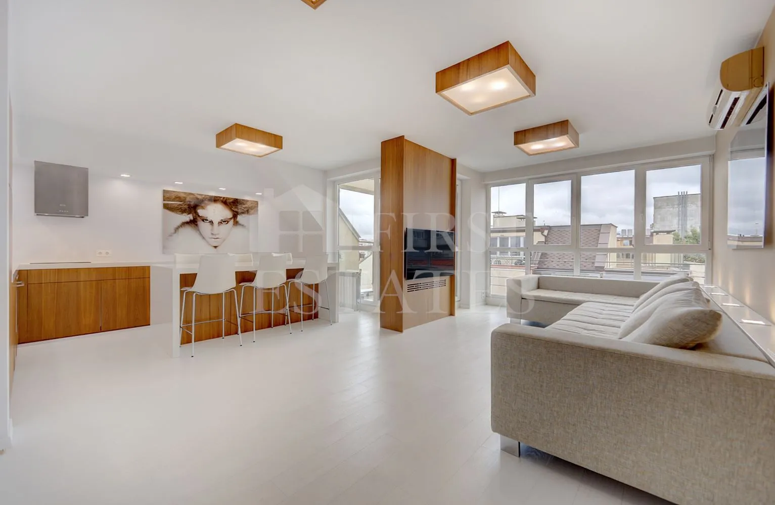 First Estates има голямото удоволствие да Ви представи този повече от стилно обзаведен апартамент в идеалния център на град София.Апартаментът се простира на целия седми етаж и е с площ от 180м2, като има следното разпределение:хол с кухня (южно изложение),кабинет (южно изложение),детска/гостна спалня с две отделни легла (северно изложение),огромна спалня с фитнес (северно изложение),три бани и тоалетнисклад/мокро помещение, като към всяка стая има тераса.Дограма Саламандър с петорен стъклопакет с шумоизолационна мембрана осигурява изключителна тишина от външните шумове. Всички врати са от фирма Солид (включително и интериорните) и са с много високо ниво на шумоизолация.Отоплението и топлата вода са на ТЕЦ, има климатици както и бойлер, в случай на аварии на топлата вода. Апартаментът е оборудван с високоскоростен оптичен интернет и IPTV от Виваком (ЕОН) със 170 канала и видеотека.Всеки един детайл е проектиран да осигури максимален комфорт: прозорци от пода до тавана осигуряват много светлина, легло в основната спалня 2х2 метра, подгряване на огледалата в баните, за да не се изпотяват при вземане на душ, димиращи се светлини, висококачествени смесители от Grohe, много луксозен и удобен диван - BoConcept, електронно резе на вратите.Апартаментът се намира на метри от метростанция, спирки на градския транспорт, Billa, Lidl, Kaufland, ресторанти, йога стидуо. Изключително комуникативно и централно място.Към апартамента има прилежащ гараж в подземния паркинг на сградата на отделна цена. За повече информация и организиране на оглед, моля свържете се с нас на телефон: 0 700 15 15 1 и цитирайте код на офертата: Z-6-11804