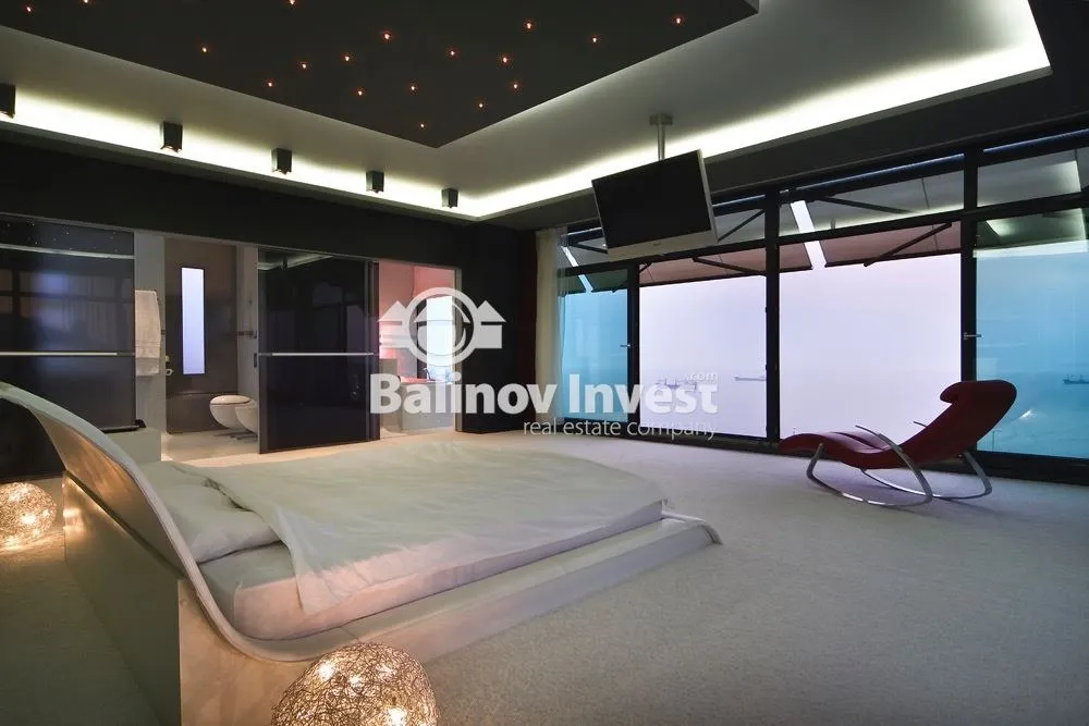 Къщата е с цялостно водно подово отопление и централна климатизация. На къщата са монтирани слънчеви колектори с 300л бойлер за топла вода. Дворното място с площ от 1763 кв.м. и е прекрасно аранжирано и озеленено. Има изградена поливна система която се захранва от собствен водоизточник. Постоянно видео наблюдение от всяка стая и още много екстри. Къщата е изградена с качествени материали и супер луксозно обзаведена по дизайнерски проект. Местоположение и неповторима морска панорама.
