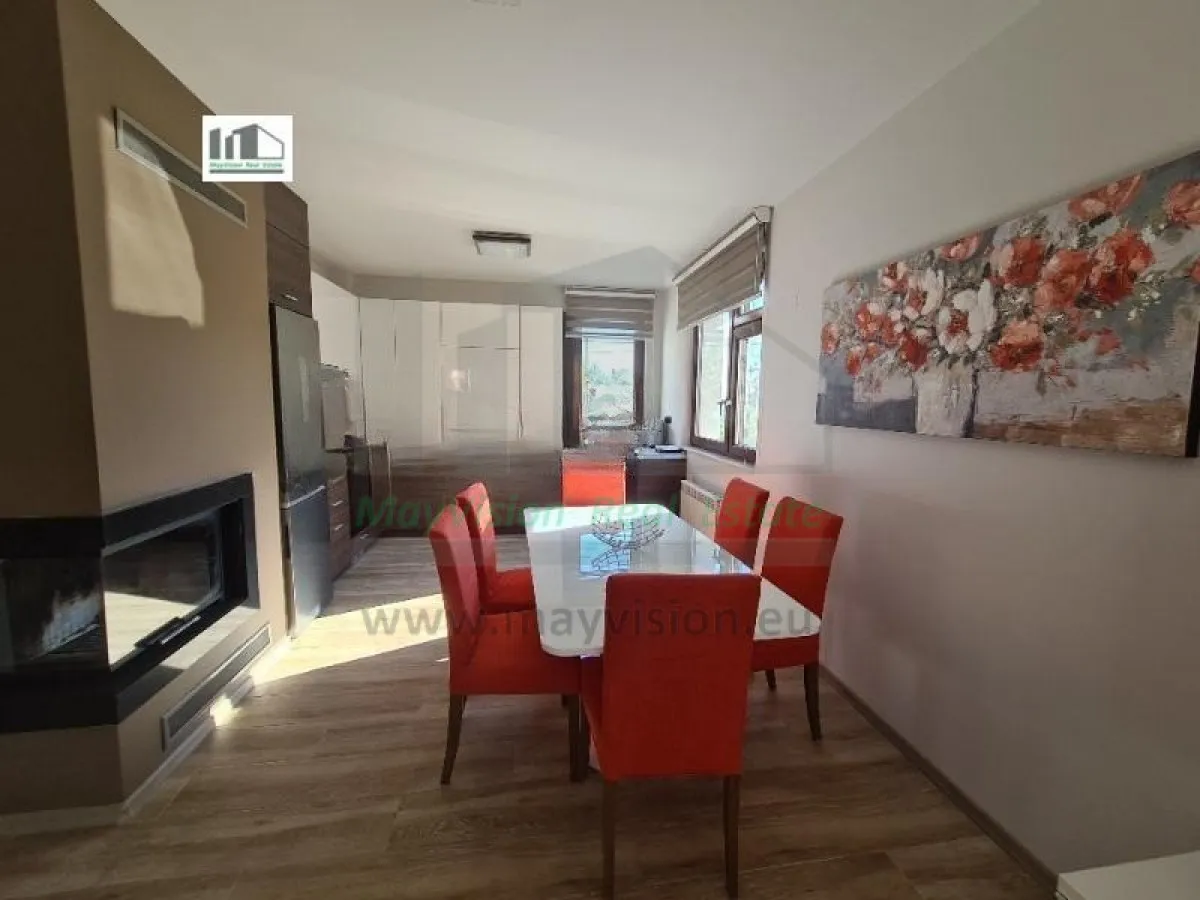 Мебелите са италиански, а уредите са немски- Bosch, има и действаща камина. Отоплението е с избор на газ и подово, или климатици. Към апартамента има надземен гараж, който е включен в цената. Също така и ползването на прекрасна градина от 500кв.м с огромен батут. С молба без домашни любимци.Жилището се намира на изключително място- само на 5 мин. пеша от Фантастико Драгалевци, и на 5 мин. с кола от Мол Парадайс и на 1мин. от спирка на обществен транспорт. Аптека и супермаркет на 2 мин. пеша. Изложението е в четирите посоки с гледки към Витоша и града.