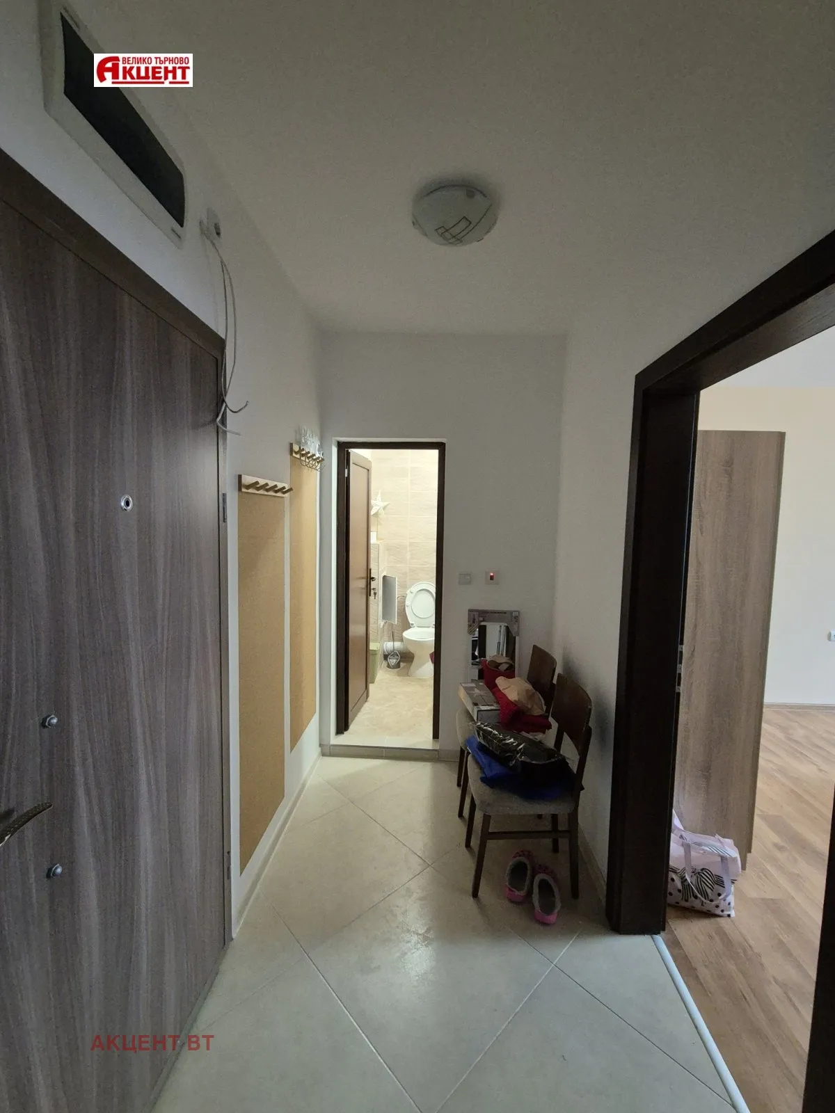Апартаментът е с площ 80 кв. м. разпределени между входно антре, просторна всекидневна с кухня, спалня, втора стая без прозорец, която може да бъде използвана за гардеробна, баня и тоалетна в един обем, към апартамента има малка градинка с цветя и място за отдих след дългия работен ден. Жилището се отдава напълно обзаведено и оборудвано с всичко необходимо за бита. Отоплението и охлаждането е с климатик. Изцяло южно изложение и панорамна гледка към Царевец. За огледи звънете на посочените телефони!