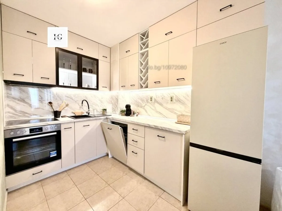 Апартаментът е напълно оборудван и готов за нанасяне, като предлага всички необходими удобства за комфортно ежедневие. На разположение на наемателите са съдомиялна машина с голям капацитет, пералня, сушилня, голям хладилник, кафе машина, както и пълна посуда.