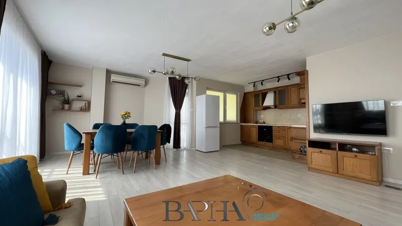 !!!ЕКСКЛУЗИВНО!!!Екипът на 'Имотен център Варна' предлага под наем изключително комфортен, артистичен и стилен тристаен апартамент, който се отдава ЗА ПЪРВИ ПЪТ ПОД НАЕМ! Намира се в предпочитан за живеене спокоен район на гр. Варна - кв. Бриз, който е на пешеходно разстояние от Морска градина и плажна ивица. Разпределение: голям коридор, ВПЕЧАТЛЯВАЩ с квадратурата си дневен тракт, две просторни спални, баня с тоалет, мокро помещение и две тераси. ПАНОРАМАТА, която спира дъха, може да й се наслаждавате и от терасите, почивайки си на спалното легло, а също така докато седите на трапезната маса. Имота е напълно обзаведен и оборудван с нови мебели и електроуреди. ТРИ КЛИМАТИКА, ТРИ ТЕЛЕВИЗОРА, съдомиялна машина, вграден аспиратор. ИМОТА РАЗПОЛАГА С ГАРАЖ! !!!!!КЛЮЧ В АГЕНЦИЯТА!!!За повече информация, оглед и още атрактивни предложения, моля обадете се на посочения телефонен номер.