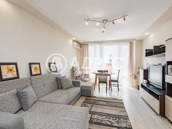 Двустаен, отлично обзаведен апартамент в района на Чаталджа цветята. Жилището е средно с южно изложение. Състои се от дневна с кухненска част - бяла техника, мека мебел, климатик. Спалня - обзаведена. Килер тип дрешник. Баня с тоалет. Обща тераса за двете стаи.