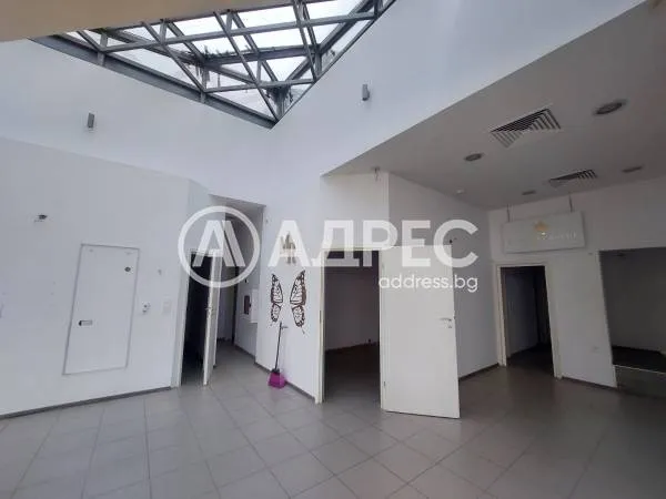 Адрес Недвижими Имоти предлага партерно помещение с обща квадратура 90 кв.м., състои се от една по- голяма зала, четири по малки помещения и две тоалетни. Подходящо е за магазин, учебен център, козметично студио, кафе, офис и друг вид търговска дейност. Посочената наемна цена е без ДДС.