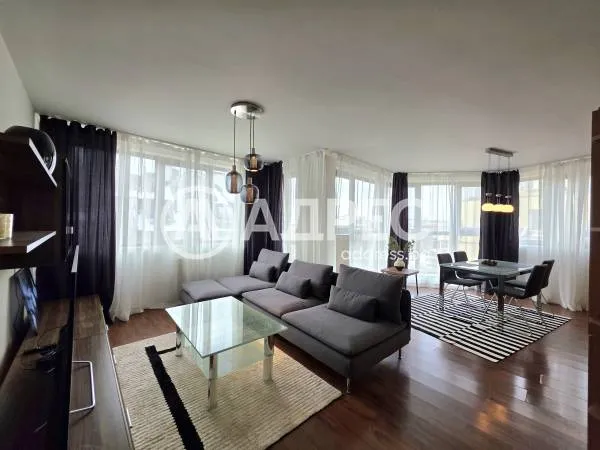 Обзаведен, просторен апартамент на 6 етаж, състоящ се от: дневна с трапезария и кухненски бокс ( напълно оборудван- печка, пералня, хладилник, миална машина, абсорбатор), три спални ,баня ( душ кабина), тоалетна, три панорамни тераси. Подови настилки: ламинат; стени- латекс; PVC-дограма.