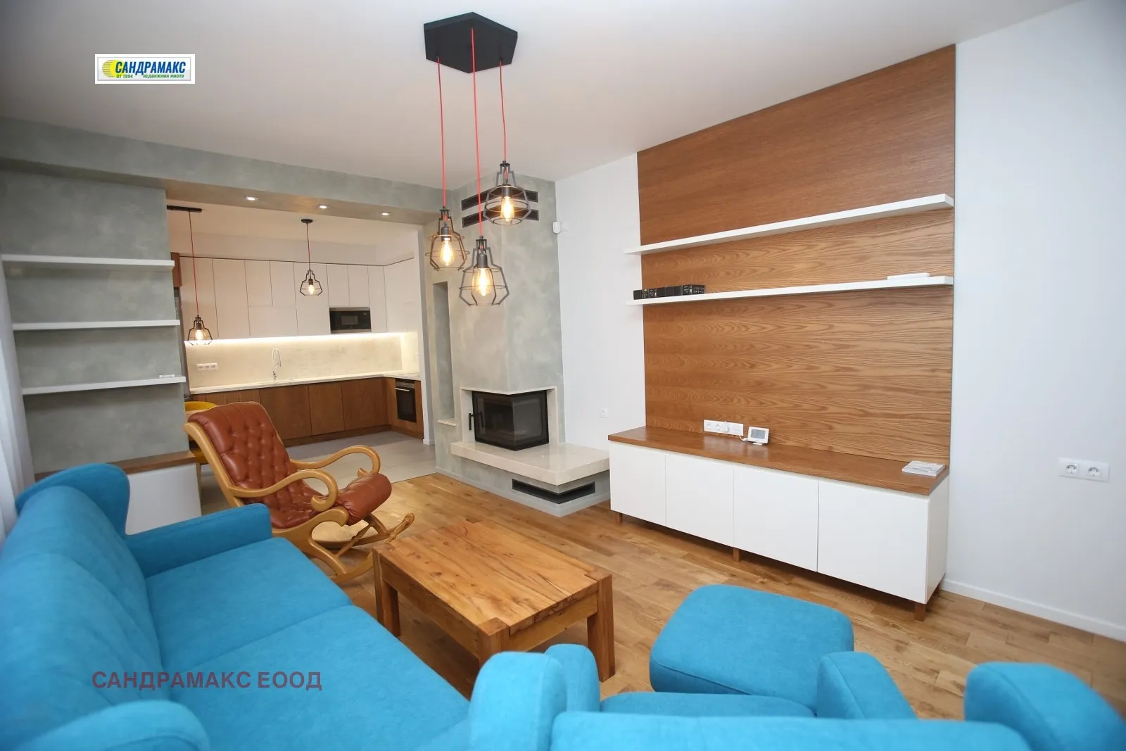 Състои се от коридор , просторна дневна с камина и светъл куненски бокс, две самостоятелни спални от които едната със собствена баня с тоалетна , втора обща баня с тоалетна , голяма тераса към едната спалня. Жилището е напълно обзаведено , като дневната е с мека мебел , кухнята напълно оборудвана с бяла техника , трапезна маса със столове, спалните са оборудвани с комплект спалня легло и вградени гардероби, баните са оборудвани с душ кабина. Подовете на мокрите помещения са покрити с гранитогрес и фаянс , а стаите с паркет. Навсякъде са поставени дизайнерски осветителни тела. Апартамента е завършен изключително качествено и прецизно с внимание към всеки детайл . Подходящ е за хора с изискан вкус и взискателност. Дограмата , вратите както и всички материали на довършителни работи са подбрани от най-висок клас.