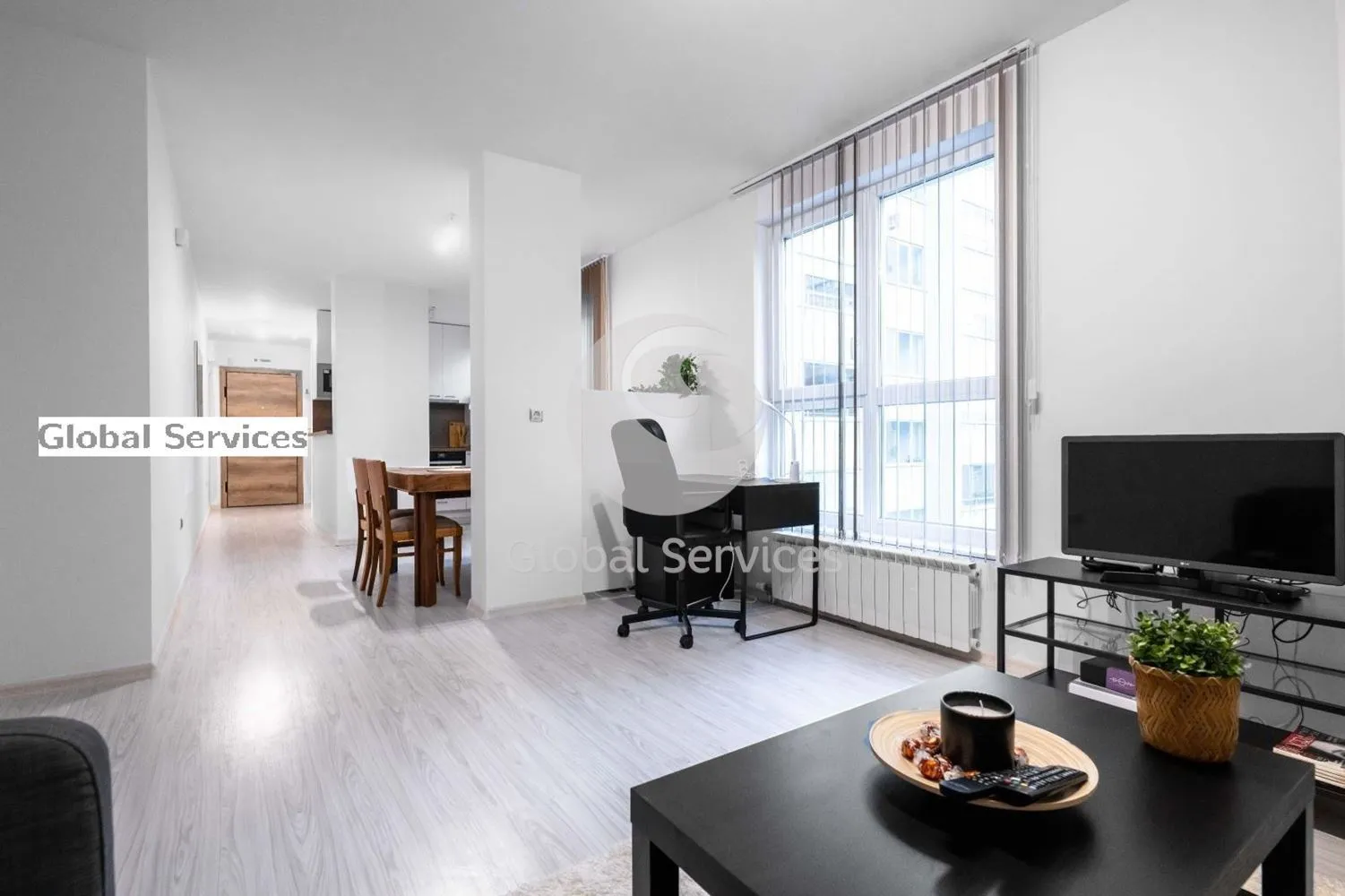 Просторен луксозно обзаведен двустаен апартамент в ж.к. Хиподрума с площ 80 кв.м. Намира се на втори етаж в нова жилищна сграда. Състои се от коридор, голям хол с обособени кътове: кухня, трапезария, холна част с мека мебел, баня, отделна спалня с втора самостоятелна баня, свързана към спалнята.Обзавеждането е с висок клас електроуреди: хладилник, пералня, миялна, вградена готварска печка, микровълнова фурна, всякаква посуда за хранене, завивки, възглавници. Жилището е оборудвано със смарт телевизор, високоскоростен интернет, блиндирана врата. Отоплението е от ТЕЦ, както и топлата вода. Има климатик за охлаждане.За огледи: тел. 0889099377, Оферта номер 18698