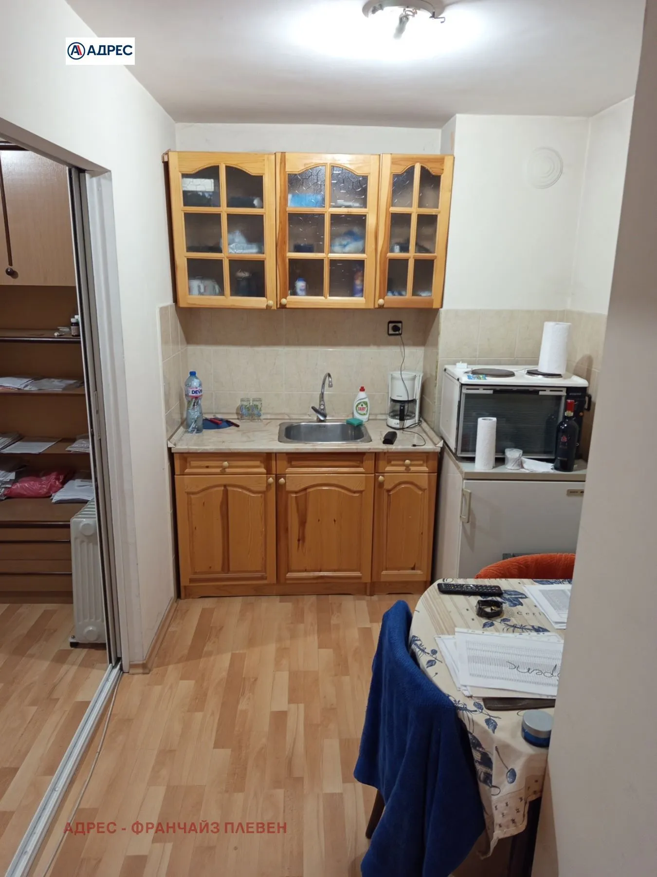 'Адрес Недвижими Имоти' -гр.Плевен предлага под наем двустаен апартамент, напълно обзаведен и оборудван, готов за нанасяне. Състои се от: спалня, дневна с кухня, баня с тоалетна, една тераса. Подходящ за сам човек или двойка, без домашни любимци. Жилището се намира в поддържана сграда, без асансьор. Спокоен район с удобен достъп до градски транспорт, магазини и услуги.За информация и огледи-0889 003 359. Последвайте страницата ни във фейсбук: Кристиян Цветанов-АДРЕС Недвижими имоти Плевен.