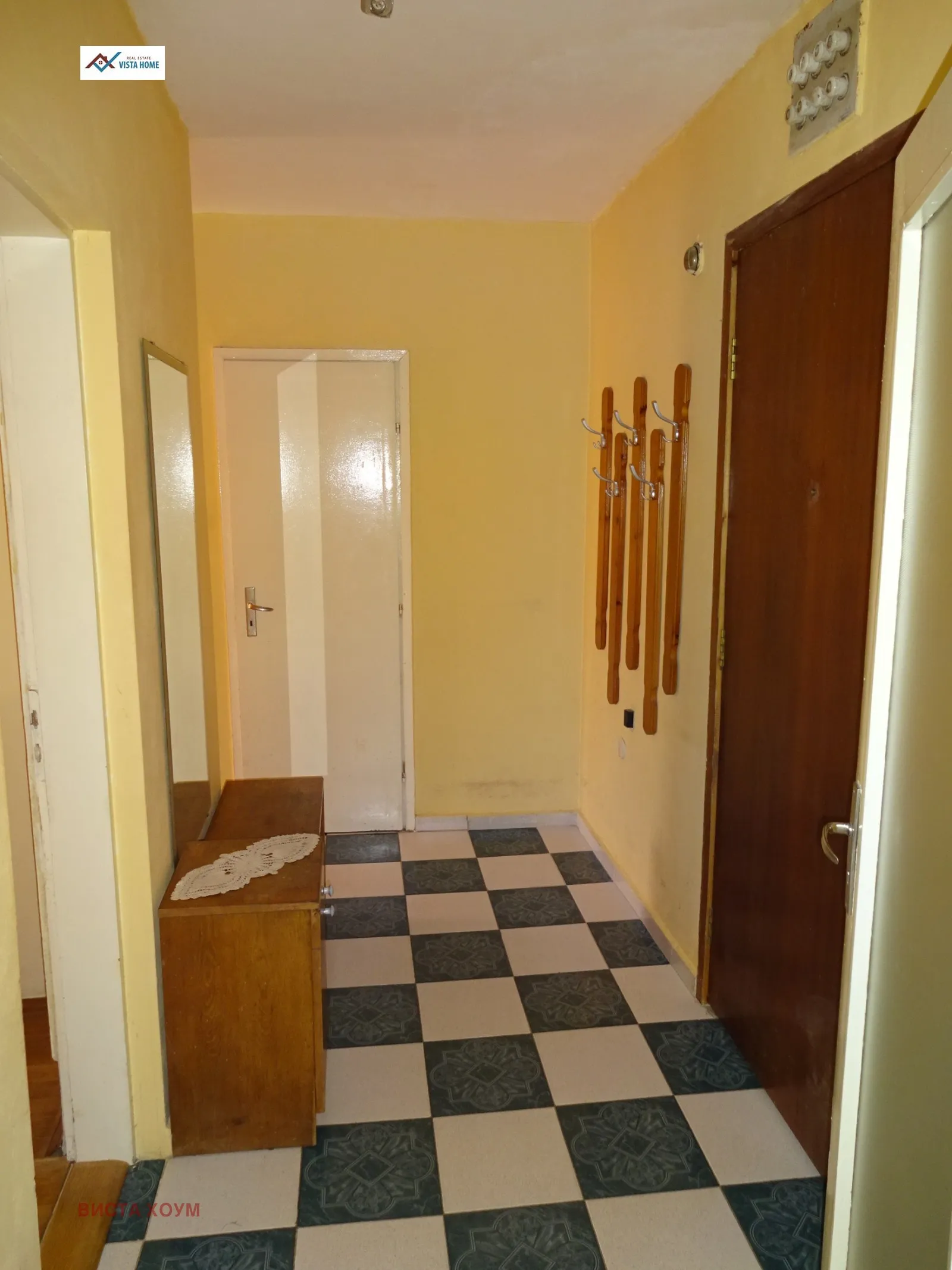 Предлагаме напълно обзаведен тристаен апартамент в отлично състояние в близост до Гранд Мол и техникумите. Жилището се намира в тухлена кооперация и се състои от дневна с кухненски бокс, отделен с функционален барплот, две спални, тоалет и баня с душ кабина, коридор, килер, както и остъклена тераса. Жилището е топло, като и трите стаи са с южно изложение, с остъклена с ПВЦ дограма. В дневната има инсталиран климатик, голям хладилник, готварска печка, удобен диван, ъглово функционално бюро, маса, столове. В спалните има удобни двойни легла, както и гардероб. Пералнята е в отделно килерно помещение. Добра инфраструктура и спирки на градския транспорт.