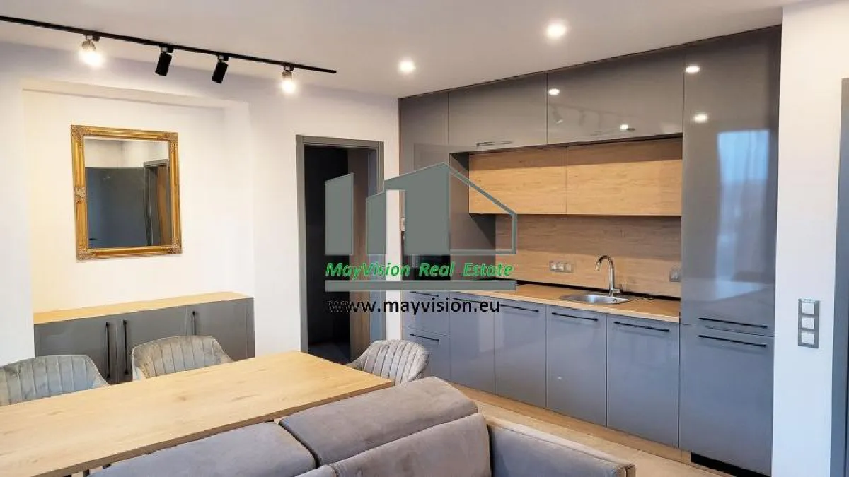 Ние от MyVision Real Estate сме горди да ви предложим под наем луксозно завършен тристаен апартамент в затворен комплекс с контрол на достъпа и видеонаблюдение. Състои се от входно антре, дневна, две спални, дрешник, мокро помещение, баня с тоалетна, тоалетна и тераса. Отопление на газ. Монтирани климатици във всяко помещение.
