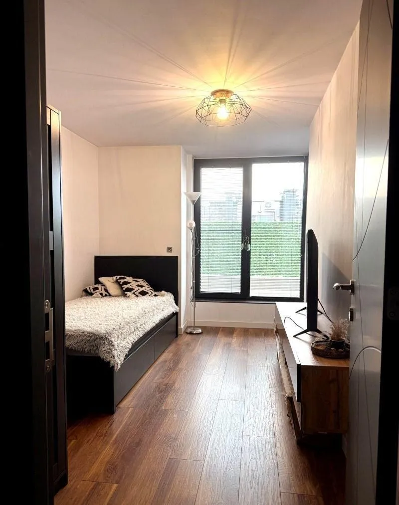Елегантен тристаен апартамент в нова сграда от 2023 г., с просторен хол с богато естествено осветление и кухненски бокс, две спални, гардеробна, баня, тераса и мазе. Отоплява се на газ и е оборудван с климатик. Счистени линии, панорамни гледки и удобства за съвременен начин на живот.