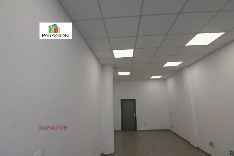 Парагон ви предлага търговско помещение в края на Централния пазар до Здравна каса. Състои се от търговска зала, складово помещение с голяма височина и сервизни помещения. Подова настилка-гранитогрес , а осветлението е с LED панели