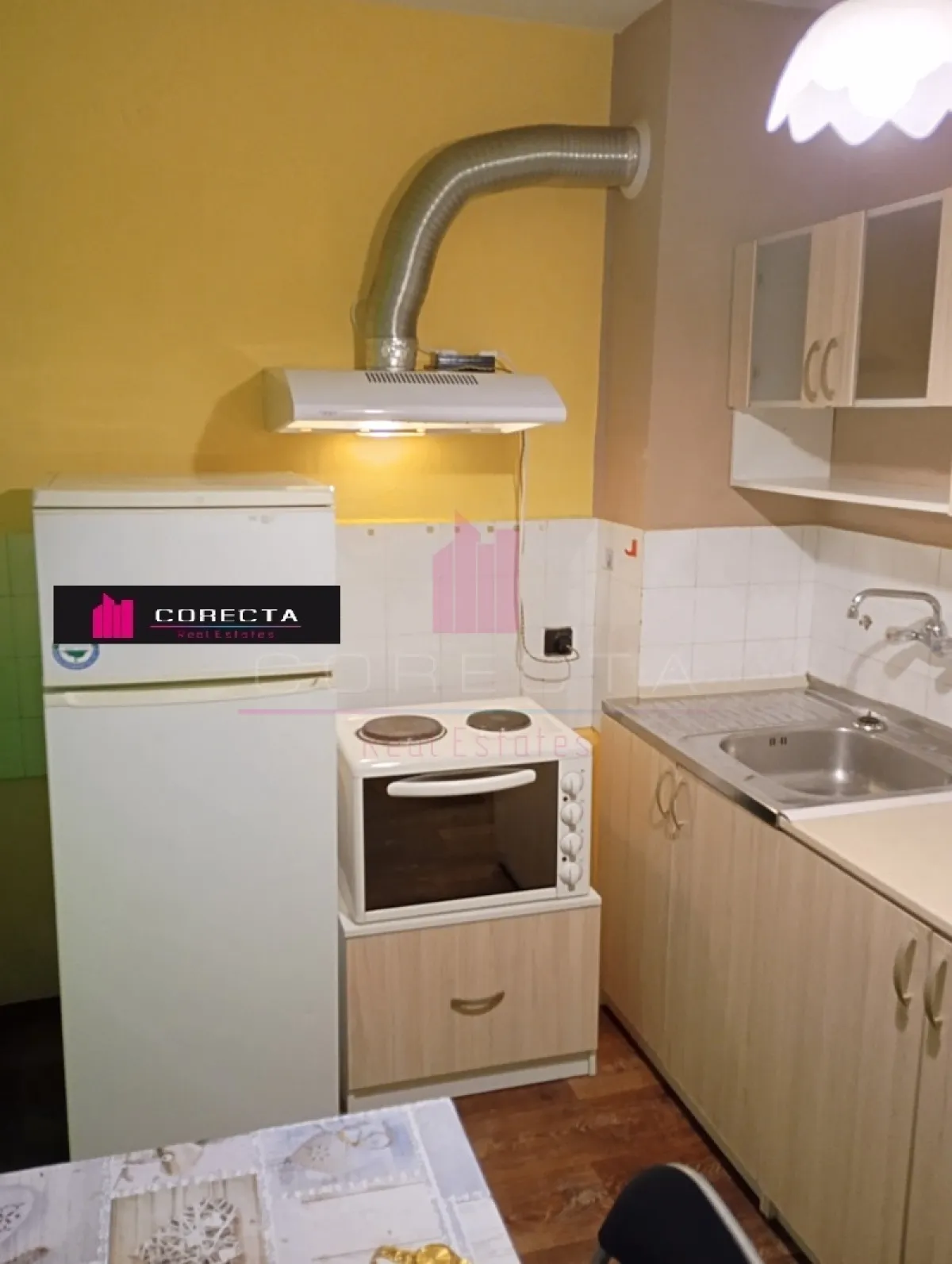 КОРЕКТА ЕСТЕЙТ Ви предлага двустаен апартамент под наем, находящ се в кв.Здравец изток, в района на ул.Котовск. Жилището е раположено на трети етаж в саниран блок и има следното разпределение: коридор, кухня, хол с ъглов диван и единично легло, тераса, спалня и баня с тоалетна. Апартамента е напълно обзаведен, отоплението е на електричество, като в едната стая е монтиран климатик. Без домашни любимци.