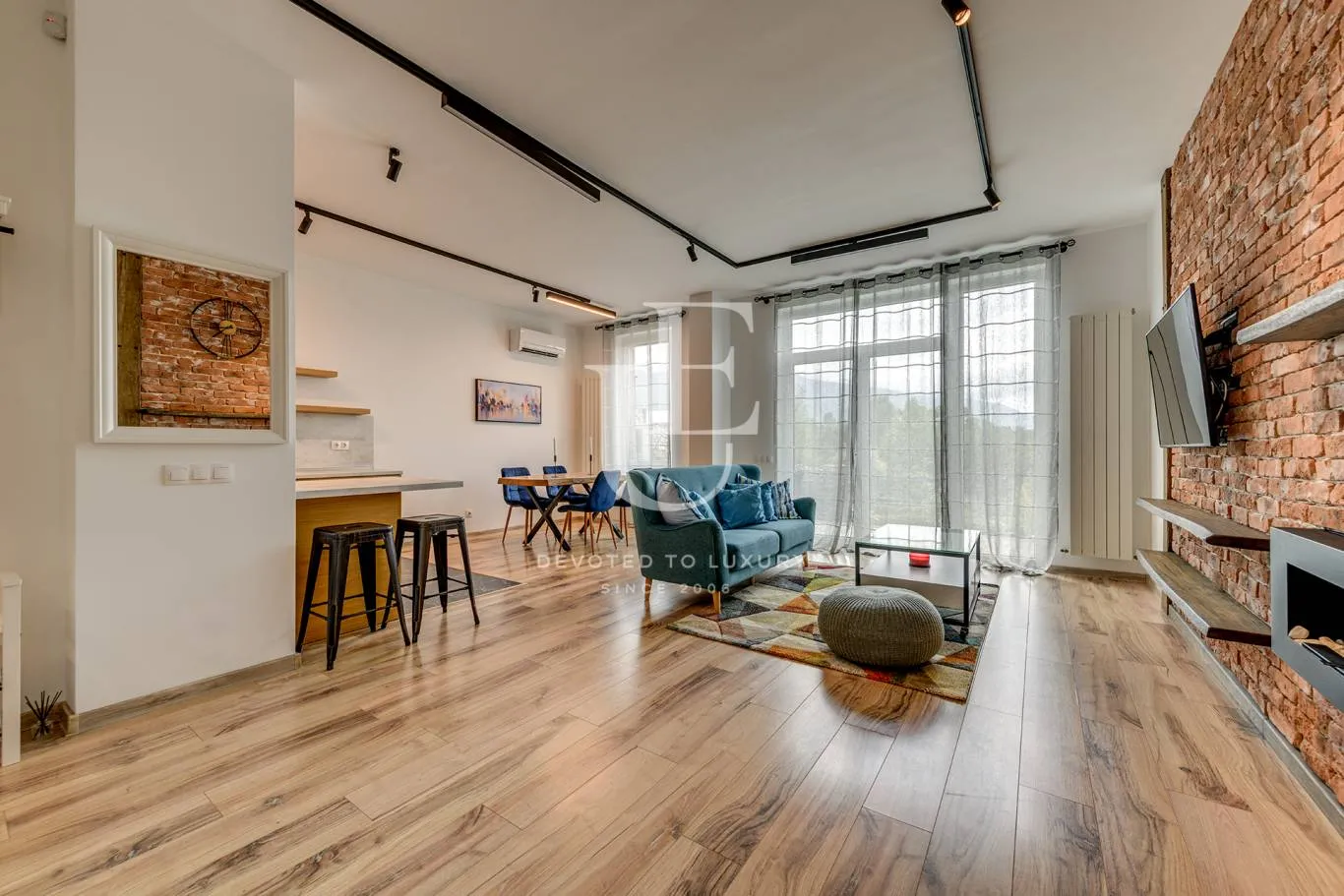 Unique Estates има удоволствието да Ви представи мезонет с двор и великолепни гледки към Витоша. Имотът е разположен на първи етаж в модерна сграда, с луксозни общи части, контролиран достъп, асансьор, и подземен паркинг. Жилището е изпълнено по дизайнерски проект в елегантен модерен стил, с усет към детайлите и функционалност. Разполага със светъл и просторен хол с висок таван, оборудвана кухня, плюс две големи и уютни спални. Апартамента се намира в непосредсвена близост до парк и е перфектен избор за семейства търсещи стилно и спокойно място за живот. Разпределение:Първи етаж - хол, трапезария с кухня, баня с тоалетна, двор Вт ори етаж - две спални, баня с тоалетна Предимства:В близост до паркВеликолепни гледки към ВитошаНова, модерна сграда (Ref. ID:26963)