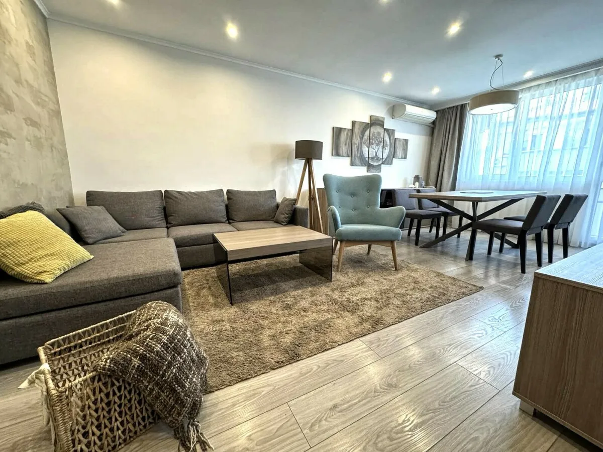 Агенция Столица Инвест представя на Вашето внимание изключителен тристаен апартамент под наем, отличаващ се с луксозно изпълнение и внимание към всеки детайл, разположен в предпочитания район Широк център на град Русе. Жилището е позиционирано на пети етаж в сграда с асансьор и контрол на достъпа, като предлага обща площ от 90 кв.м. с функционално изложение изток-запад и модерен интериор. Вътрешното разпределение включва широко антре, просторен дневен тракт, обединен с напълно оборудвана кухня, две уютни спални, баня с пералня и сушилня, отделен санитарен възел и две тераси, едната от които е остъклена с висок клас PVC дограма. За максимален комфорт и енергийна ефективност във всички помещения е монтирана 10-сантиметрова изолация от каменна вата с окачени тавани и вградено осветление, а отоплението и охлаждането са осигурени чрез висок клас икономични климатици във всяка стая. Апартаментът е изцяло окабелен, разполага с интернет връзка и предлага абсолютно всички необходими удобства за дългосрочно наемане.