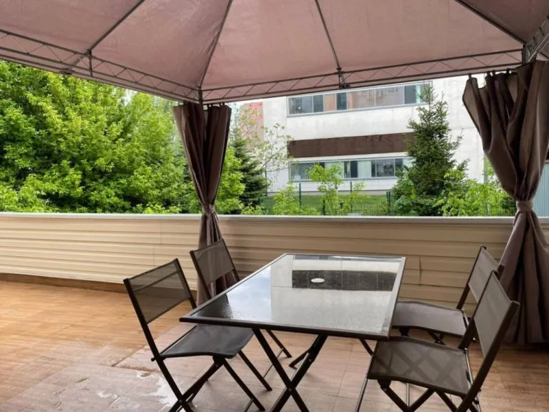 - Луксозно обзаведен тристаен апартамент с площ от 132 кв.м. , граничещ с ' озеленената част ' на mall ' Сердика '. В близост до кръстовището на ул. ' Оборище ' и ул. ' Черковна '. На пешеходно разстояние до парк ' Заимов ' , метростанция ' Театрална ' , различни учебни заведения и търговски обекти, както множество други удобства.- Разположен на първи надпартерен етаж от пет , имотът е изложен изцяло на изток. Състои се от входно антре , просторна и светла дневна с трапезария и изцяло оборудван кухненски бокс , баня с тоалетна , отделна тоалетна , две големи самостоятелни спални , както тераса с площ от около 50 кв.м. с подвижна тента и градинска мебел.- Повече информация , както уговорки относно огледи , на тел . : 0877 613 094