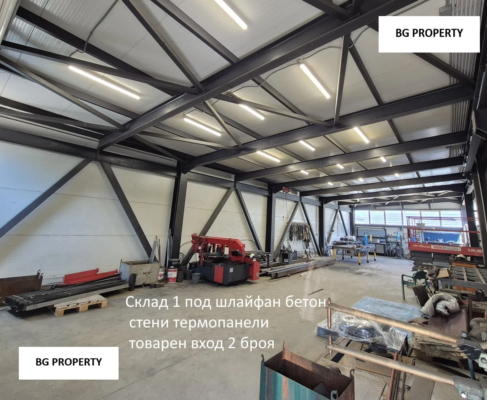 Единият е с размер 220 кв.м. термопанел под-шлайфан бетон. Към него има офис. Височина от 4 до 4,5м. Другият е с размер 180кв.м. стени тухла и под-шлайфан бетон. Бонус 40кв.м. Височината му е 6м.