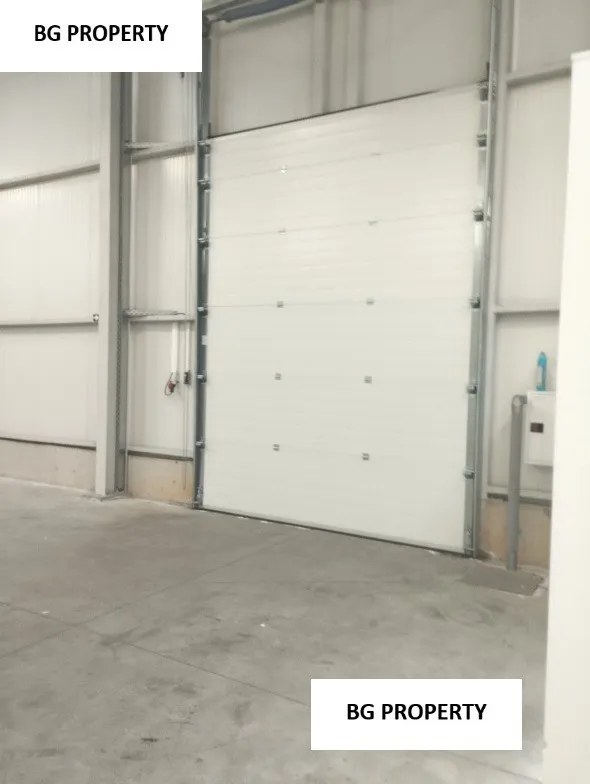 Стени термопанели, Под шлайфан бетон, лесни маневри на палетни колички. Възможност за паркоместа, санитарен възел в помещението, офис с интернет и телефон, Ток и вода -Да. Товарен вход-4 х 4 м. Височина до кота корниз - 5 м.
