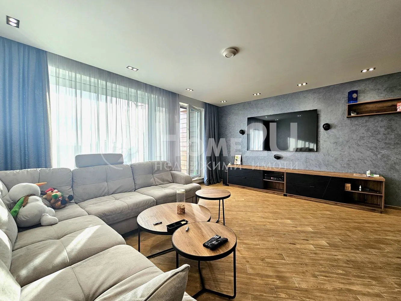 ОСНОВЕН РЕМОНТ !!! ПРОСТОР !!! СПОКОЙСТВИЕ !!!Чисто нов четиристаен апартамент в сграда с Акт16 от 2023г., който разполага със следното разпределение:антре, всекидневна + кухненски бокс 45кв, три спални (едната е мастър бедруум със собствена баня), обща баня с тоалетна, мокро помещениеОбазаведен с най-висок клас мебели и уреди, подово отопление и възможност за монтиране на климатици. Сградата има общ двор за жителите й. Точно до входната врата на същия етаж има фитнес със сауна. Към имота има мазе и паркомясто в цената.Обадете се и цитирайте кода: 141532