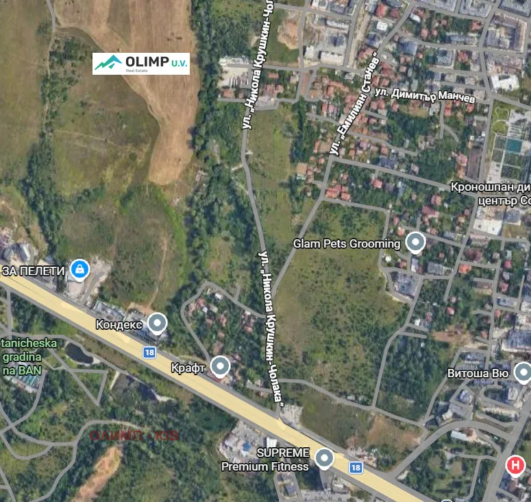От имота се разкрива прекрасна панорамна гледка към Витоша планина, а околната среда предлага спокойствие и чист въздух, съчетани с удобен достъп до центъра на града.Кварталът се оформя като много тих, озеленен и луксозен. Подходящ е за изграждане на модерна жилищна сграда и представлява чудесна инвестиция в един от най-предпочитаните южни райони на София.