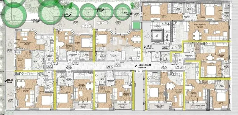В комплекса са предвидени общо 59 апартамента - двустайни, тристайни и ателиета, проектирани с внимание към функционалността и уюта на всеки един от тях.