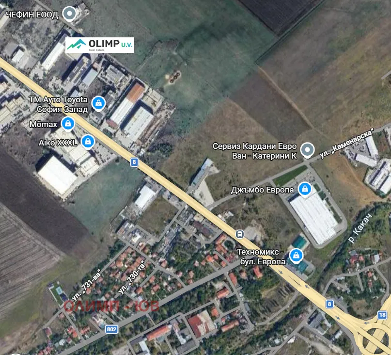 Парцелът е съставен от два имота и е разположен на 2-ра линия от бул. Европа, в близост до магазин Aiko и Jumbo. Локацията е изключително комуникативна, с постоянен автомобилен поток и отлична видимост, в утвърден търговски район с изградена инфраструктура и активна бизнес среда.