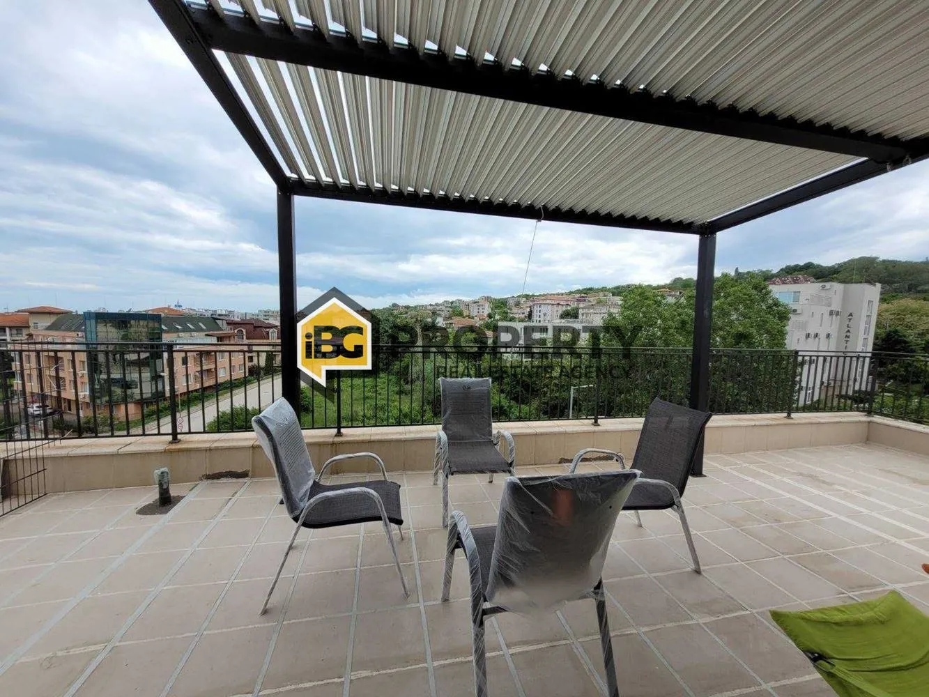 Перлата на имота е просторната тераса от 65 кв.м, оборудвана със стилна слънцезащитна пергола, където можете да се наслаждавате на сутрешното си кафе или романтични вечери с изглед към безкрайната синева на морето.
