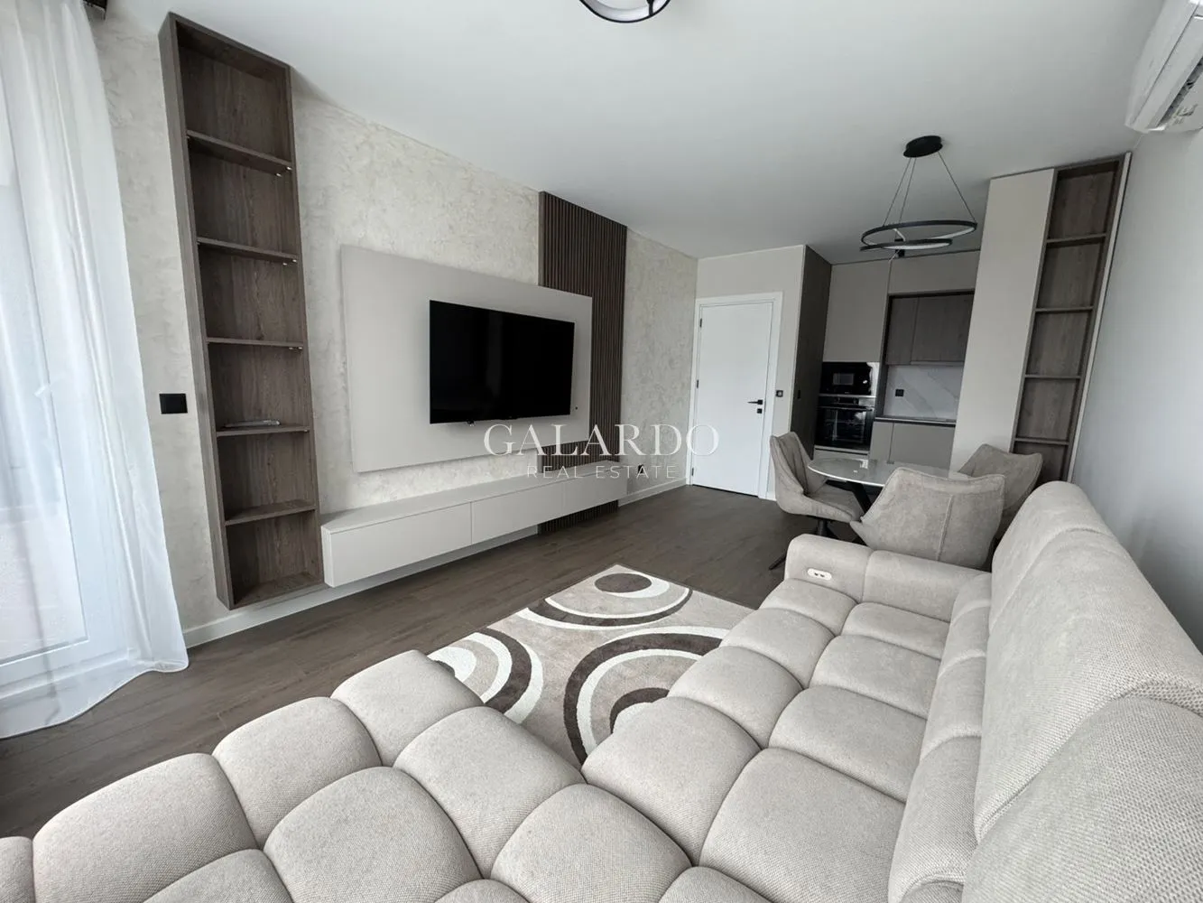 Galardo Real Estate предлага на вашето внимание луксозно обзаведен 2-стаен апартамент в сграда на доказал се строител с множество завършени обекти в района. Апартаментът е изцяло обзаведен с висок клас мебели и всички нужни електроуреди, готов за ползване. Отопление - ТЕЦ и климатик. Изложение - запад. С бърз достъп до булевард Симеоновско шосе и Околовръстен път, в близост до супермаркети Фантастико и Кауфланд, паркове, детски градини и спирки на градски транспорт.Възможност за закупуване на подземен гараж 34 000 евро