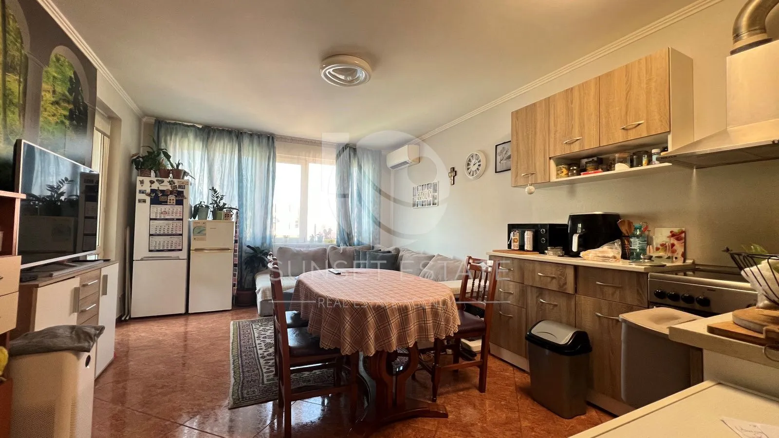 Сънсет Естейт предлага тристаен апартамент в старата част на гр. Поморие – на около 150 метра от Централния плаж и в непосредствена близост до Общината и централната зона.Имотът е разположен на последен етаж в добре поддържана сграда, на тиха улица, съчетаваща спокойствие и бърз достъп до всичко необходимо.📐 Чиста площ: 74,30 кв.м📦 Прилежащи части: 11,70 кв.м📍 Етаж: 4 (последен)🏢 Сграда без асансьор🧭 Изложение: юг / югозападРазпределението е удобно и функционално – Г-образен коридор, просторна дневна с кухненски бокс, две самостоятелни спални, две бани с тоалетна, два балкона и склад.Жилището е оборудвано с климатици във всяка стая.Настилки:• спални – ламиниран паркет• останали помещения – теракотаКъм имота има и таванско помещение в подпокривното пространство.Имот с отлична локация и добре организирано вътрешно пространство, подходящ за постоянно живеене.Оферта № Z-498📞 Обади се за информация и оглед🌐 www.sunsetestate.bg