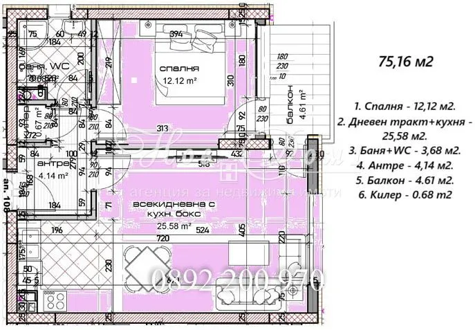 Функционален Двустаен апартамент с Прекрасна дневна!✨ Представяме Ви отлично проектиран двустаен апартамент, който впечатлява с просторната си дневна и идеалното си разпределение. Този имот е перфектният избор за млади двойки, стартиращи семейства или като инвестиция с висока доходност.Ключови Параметри:✔Локация: ж.к.Младост– Стратегическо местоположение с лесен достъп до всички удобства.✔Цена: 123 500€.✔Етаж: Дванадесети - Осигуряващ тишина, светлина и защита от шума на улицата, ПРЕКРАСНА Гледка!✔Обща Площ: 75.16 м².📐 Разпределение:Апартаментът е проектиран за максимален уют и функционалност, като всяко помещение е с правилна форма:✔Просторна Дневна с Кухненски Бокс: 25.58 м² – светлина и пространство! Перфектно обособени зони за готвене, хранене и почивка. Идеално място за Вашето ежедневие и социални контакти.✔Спалня: 12,12 м² – Уютна и достатъчно голяма за двойно легло и гардероб.✔Входно Антре (Коридор): 4,14 м² – Широко и удобно за поставяне на портманто и шкаф за обувки.✔Килер/Мокро Помещение: 0,68 м² – Ключово Предимство! Допълнително помещение за пералня, бойлер и складиране – освобождава банята и коридора.✔Баня с WC: 3.68 м² – Функционална и достъпна.✔Балкон - 4,61 м².✅ Защо Този Апартамент е Вашият Избор?Отлична Инвестиция: Апартаменти с такова разпределение и квадратура са изключително търсени както за живеене, така и за отдаване под наем.Качествена Сграда: Доказан строител с богато портфолио от качествено построени сгради.Свържете се с нас днес, за да запазите Вашия час за оглед!Забележка: Публикуваните снимки са илюстративни и имат представителен характер. Те са предназначени да онагледят възможното оформление, стил и потенциал на имота след завършване/обновяване. Реалното състояние на имота може да се различава от показаното на изображенията.За допълнителни въпроси и огледи:Консултант недвижими имоти: Боряна Ангелова - 0892 200 970www.novdom1.bg реф. Z-н.84381