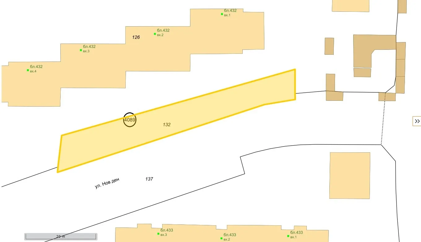 Урегулиран поземлен имот с идентификатор:68134.4089.132 в кв. Жк - Жилищна зона с преобладаващо комплексно застрояване. Отреждане по ПУП - за публично мероприятие, плътност 40%, кинт 3, минимално озеленена площ 40%, кота корниз - 26 за жилищна сграда, 32 за обществена сграда.