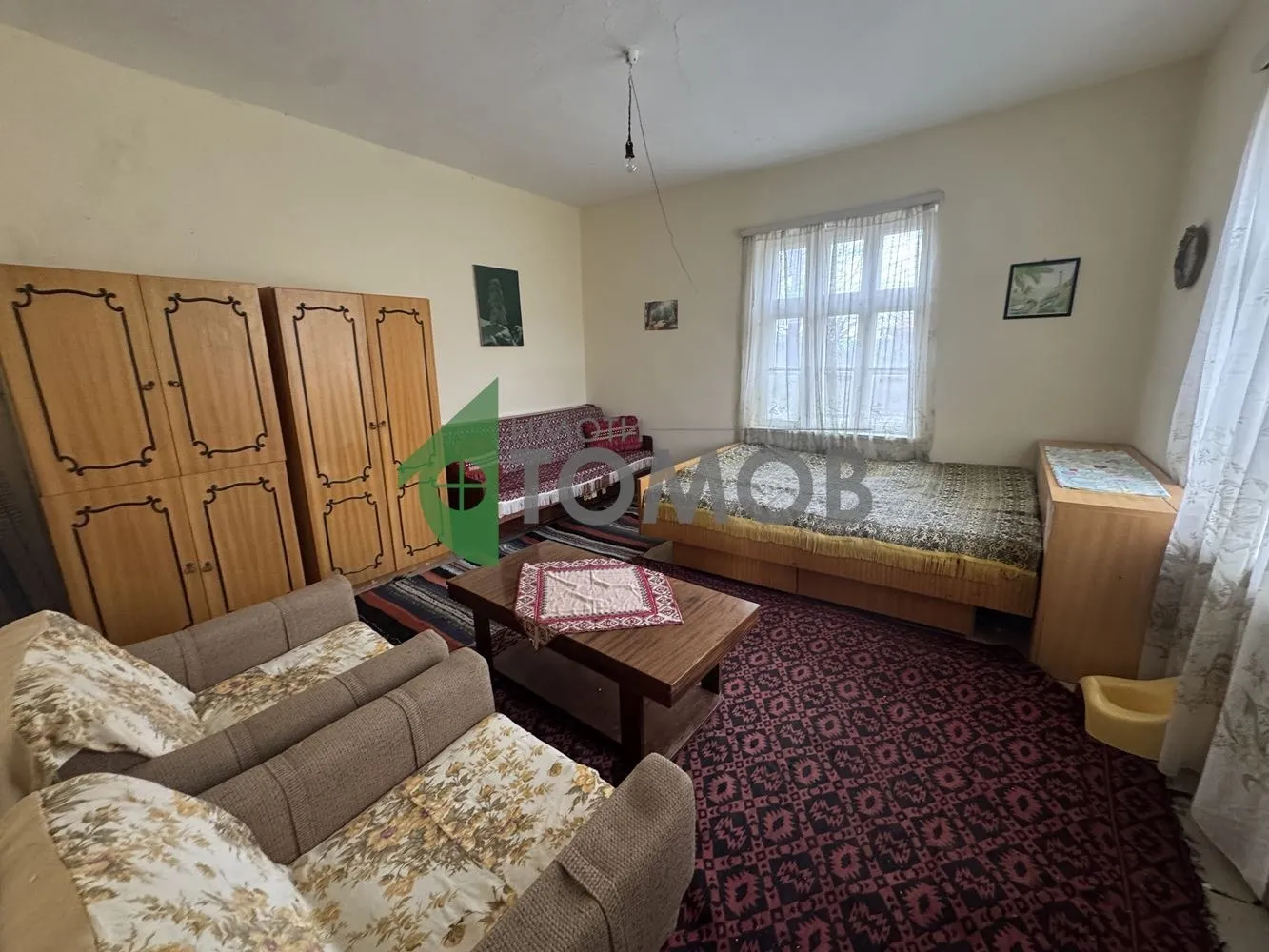 Имоти Томов представя ексклузивно на Вашето внимание едноетажна къща, разположена в централната част на град Смядово. Имотът е със застроена площ от 151 кв.м, разделена на три жилищни постройки - 62 кв.м, 48 кв.м. и 41 кв.м. със следното разпределение: