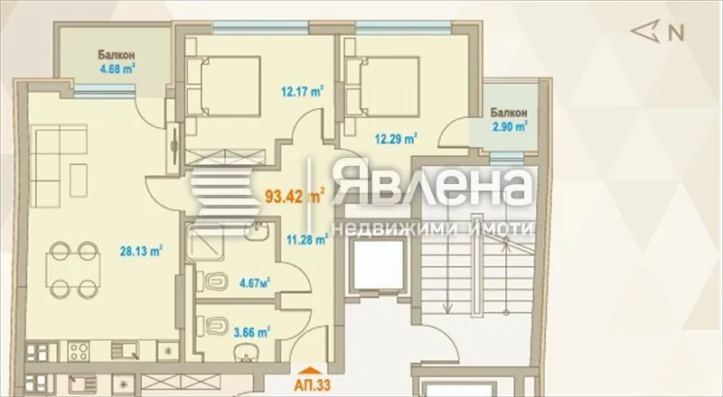 До основни пътни артерии, градски транспорт и две метростанции! На пешеходно разстояние от центъра на столицата. Предлагаме за продажба изключително стилен и функционален двустаен апартамент (ап. 33) в модерна и елегантна жилищна сграда, от висок клас, разположена на ключова и комуникативна локация в широк център на София. Сградата впечатлява с елегантна архитектура, изчистени линии и висококачествени материали. В строеж, на ранен етап. С най-иновативни материали, вкючително тухли Wienerberger и висок клас PVC. Гарантирана отлична енергоефективност на сградата, посредством най-висок клас дограми, фасадни облицовки и топлоизолации от водещи производители, осигурява ниски сметки на отопление и електривеството. Сградата се отличава със стилна и съвременна визия, като хармонизира с градската среда. Външното LED осветление подчертава формите и създава усещане за престиж и сигурност. Общите части са луксозно изпълнени, входът е представителен, а околността – тиха и добре поддържана. Намира се в близост до търговски вериги, училища, детски градини, здравни заведения, ресторанти и кафенета, магазини, супермаркети и мол София. Параметри на апартамента: Обща (чиста) площ: 93.42 m². С общи части: 129.09m². Етаж: 12ти в модерна многоетажна сграда от 14 етажа. Крайна цена: 299 800 евро. Цената включва ДДС. Изложение: на изток и юг, с отлично естествено осветление през целия ден. Балкон 1: 2.90 m². Балкон 2: 4.68 m² Разпределение: Просторна дневна с кухненски бокс: 28.13 m². Отворено пространство, подходящо за кът за почивка, трапезария и модерна кухня. Големите прозорци осигуряват светлина и усещане за простор. Спалня 1: 12.29 m² Спалня 2: 12.17 m². Комфортни и добре пропорционирани стаи, подходящи за голямо легло и гардероб. Антре и коридор: 11.28 m². С възможност за вградени шкафове и удобно съхранение. Два санитарни възела: 3.66 m² и 4.67 m². Предимства на имота: Нова и висококачествена сграда. Модерен дизайн и първокласни материали. Светъл и функционален апартамент с оптимално разпределение. Топ локация, подходяща както за живеене, така и за инвестиция. Предлагат се и довършителни работи за привеждане на имота до ключ, с доплащане. Възможно е и покупката на паркомясто (30 000-35 000 евро) или гараж (45 000 евро). За оглед и повече информация, свържете се с Надежда Цолова.(http://www.yavlena.com/165101) ID:Z-165101