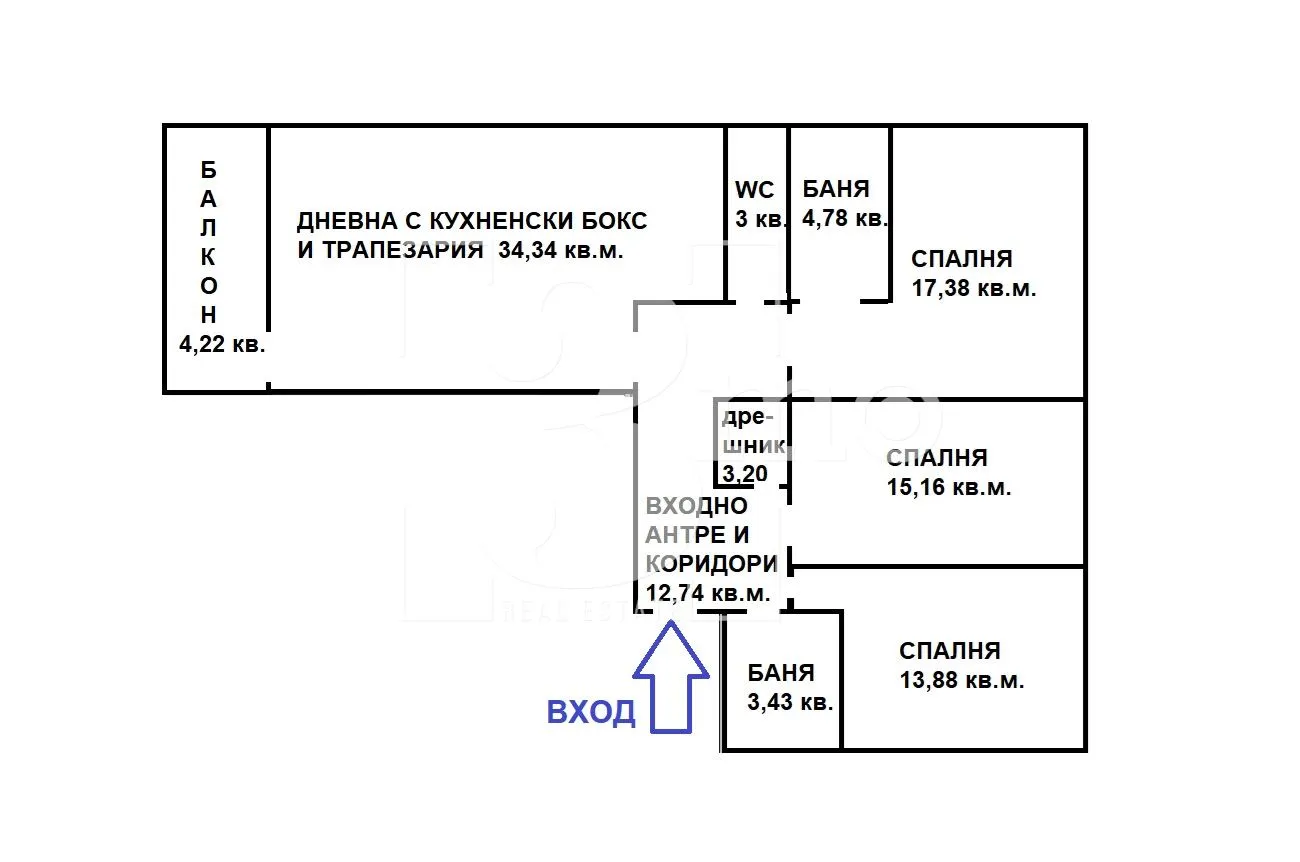 3mo Амалтея има удоволствието да Ви предложи четиристаен апартамент в нова модерна жилищна сграда в ж.к. Люлин 2. Сградата е разположена до входа на бъдеща метростанция. Предложеният имот е с обща площ 169,15 кв.м. (застроена 139,46 кв.м.) и се състои от: входно антре с коридори (12,74 кв.м.), всекидневна с кухненски бокс и трапезария (34,34 кв.м.) с балкон (4,22 кв.м.), спалня (17,38 кв.м.) с баня (4,78 кв.м.), втора спалня (15,16 кв.м.), трета спалня (13,88 кв.м.), втора баня с тоалетна (3,43 кв.м.), отделна тоалетна (3 кв.м.) и дрешник/склад (3,20 кв.м.). Жилището е разположено на девети от общо шестнадесет етажа с изложение югозапад и североизток. Отоплението е чрез ТЕЦ. Продаваме и други имоти в сградата с функционални разпределения и различни изложения. Апартаментите се продават в степен на завършеност по БДС с монтирана входна врата, поставена дограма, изградена домофонна инсталация и окабеляване. Отделно е възможна покупка на паркомясто или гараж. Планирано разрешение за ползване в края на 2026-та година. Инвеститорът е с дългогодишен опит в строителството. Предлага съвременна визия на своите сгради с луксозно изпълнение на общите части. В близост до сградата са разположени множество и най-различни търговски, хранителни и денонощни магазини и обекти. Също така детска градина, училища и спирки на градски транспорт и метро. Връзката с централната и други части на столицата се осъществява посредством бул. "Царица Йоанна", бул. "Петър Дeртлиев" и Околовръстен път.