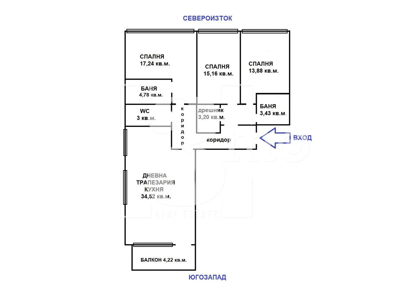 3mo Амалтея има удоволствието да Ви предложи четиристаен апартамент в нова модерна жилищна сграда в ж.к. Люлин 2. Сградата е разположена до входа на бъдеща метростанция. Имотът е с обща площ от 169,15 кв.м. (застроена 139,46 кв.м.) и се състои от: входно антре (5,39 кв.м.), коридор (4,71 кв.м.), всекидневна с кухненски бокс и трапезария (34,52 кв.м.), балкон (4,22 кв.м.), коридор (2,64 кв.м.), дрешник (3,20 кв.м.), спалня (17,24 кв.м.) с баня с тоалетна (4,78 кв.м), втора спалня (15,16 кв.м.), трета спалня (13,88 кв.м.), втора баня с тоалетна (3,43 кв.м.) и отделна тоалетна (2,98 кв.м.). Жилището е разположено на четвърти от общо шестнадесет етажа. Има изложение югозапад и североизток. Отоплението е чрез ТЕЦ. Продаваме и други имоти в сградата с функционални разпределения и различни изложения. Имотите се продават в степен на завършеност по БДС с монтирана входна врата, поставена дограма, изградена домофонна инсталация и окабеляване. Отделно е възможна покупка на паркомясто или гараж. Планирано разрешение за ползване в края на 2026-та година. Инвеститорът е с дългогодишен опит в строителството. Предлага съвременна визия на своите сгради с луксозно изпълнение на общите части. В близост до сградата са разположени множество и най-различни търговски, хранителни и денонощни магазини и обекти. Също така детска градина, училища и спирки на градски транспорт и метростанция "Люлин". Връзката с централната и други части на столицата се осъществява посредством бул. "Царица Йоанна" и бул. "Панчо Владигеров".