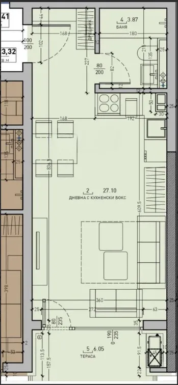 Просторна дневна с кухненски бокс отворено пространство, което позволява творчество и оптимизация според вашия ритъм на живот 🛋️