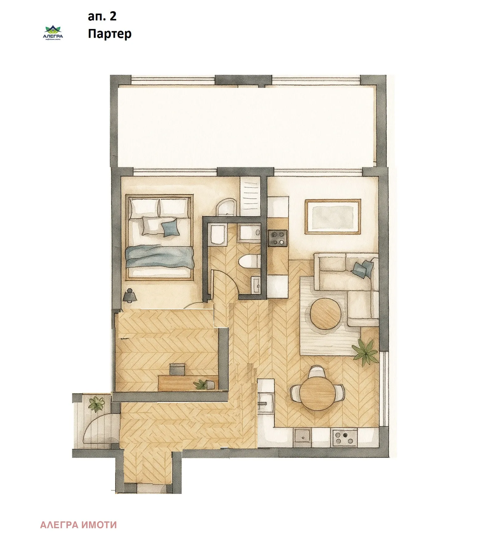 - веранда с директен излаз от двете стаи