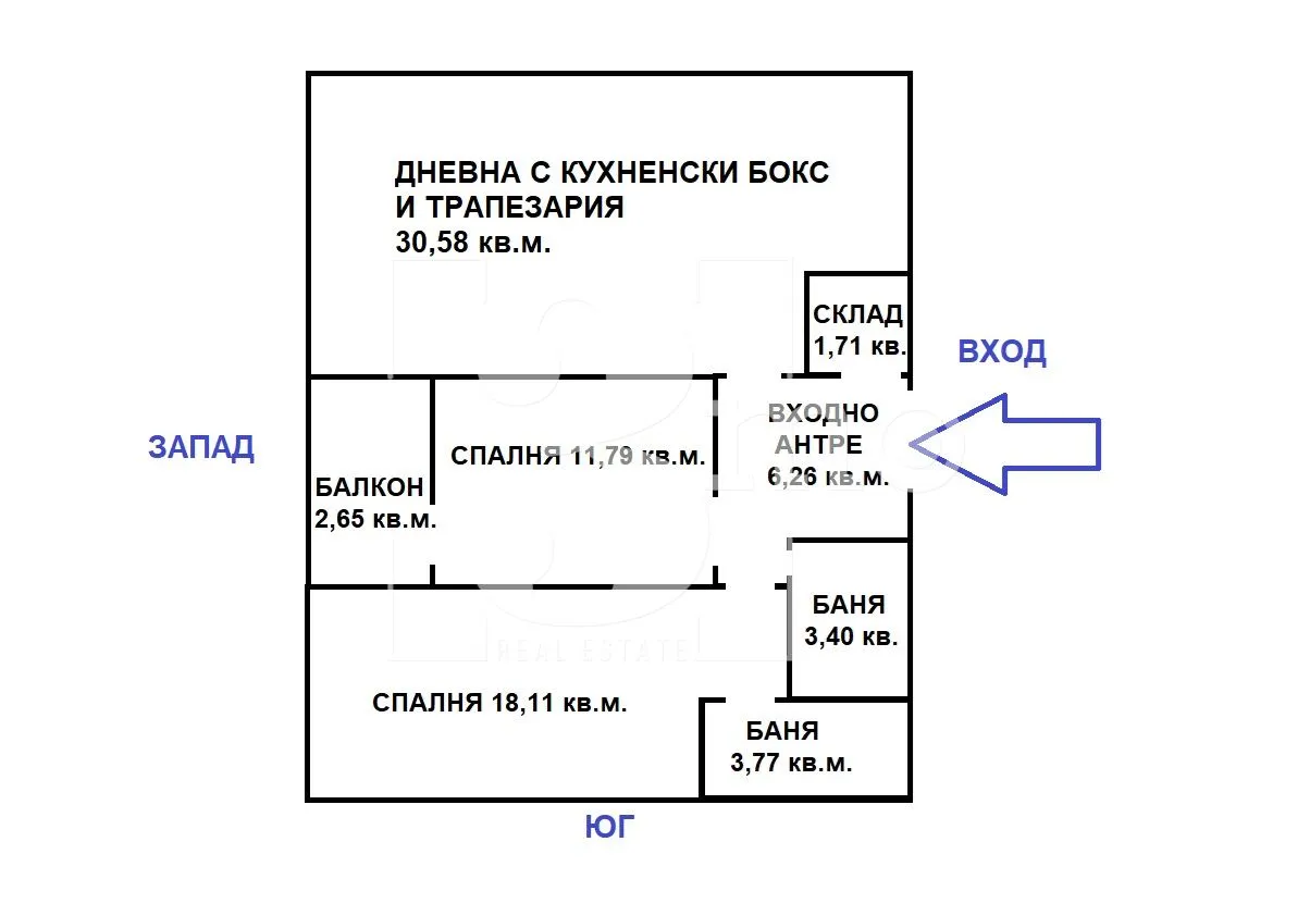 3mo Амалтея има удоволствието да Ви предложи тристаен апартамент в нова модерна жилищна сграда в ж.к. Люлин 2. Сградата е разположена до входа на бъдеща метростанция. Имотът е с обща площ от 114,63 кв.м. (застроена 93,68 кв.м.) и се състои от: входно антре (6,26 кв.м.), всекидневна с кухненски бокс и трапезария (30,58 кв.м.), балкон (2,65 кв.м.), дрешник/склад (1,71 кв.м.), спалня (18,11 кв.м.) с баня и тоалетна (3,77 кв.м), втора спалня (11,79 кв.м.), втора баня с тоалетна (3,40 кв.м.). Жилището е разположено на първи от общо шестнадесет етажа. Има изложение югозапад. Отоплението е чрез ТЕЦ. Продаваме и други имоти в сградата с функционални разпределения и различни изложения. Имотите се продават в степен на завършеност по БДС с монтирана входна врата, поставена дограма, изградена домофонна инсталация и окабеляване. Отделно е възможна покупка на паркомясто или гараж. Планирано разрешение за ползване в края на 2026-та година. Инвеститорът е с дългогодишен опит в строителството. Предлага съвременна визия на своите сгради с луксозно изпълнение на общите части. В близост до сградата са разположени множество и най-различни търговски, хранителни и денонощни магазини и обекти. Също така детска градина, училища и спирки на градски транспорт и метростанция "Люлин". Връзката с централната и други части на столицата се осъществява посредством бул. "Царица Йоанна" и бул. "Панчо Владигеров".